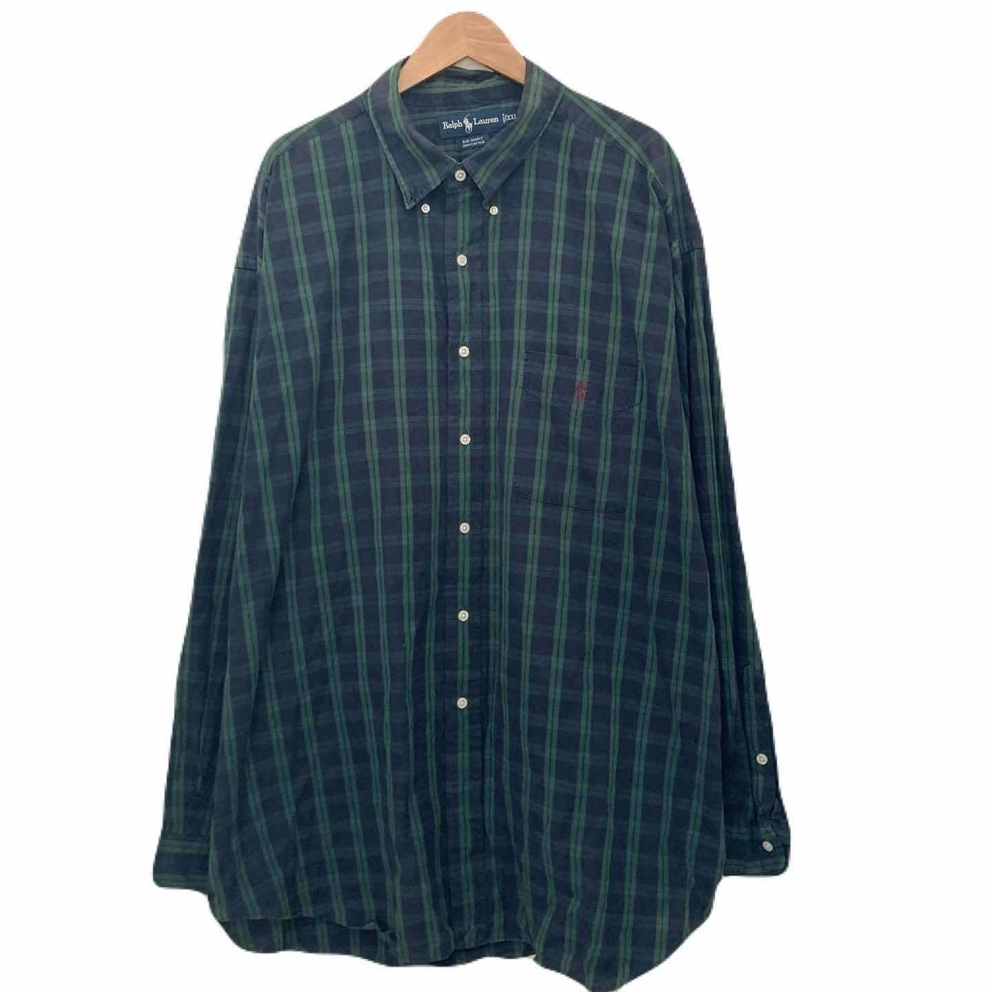 ラルフローレン big shirt 90s チェック 長袖 グリーン 綿 2XL