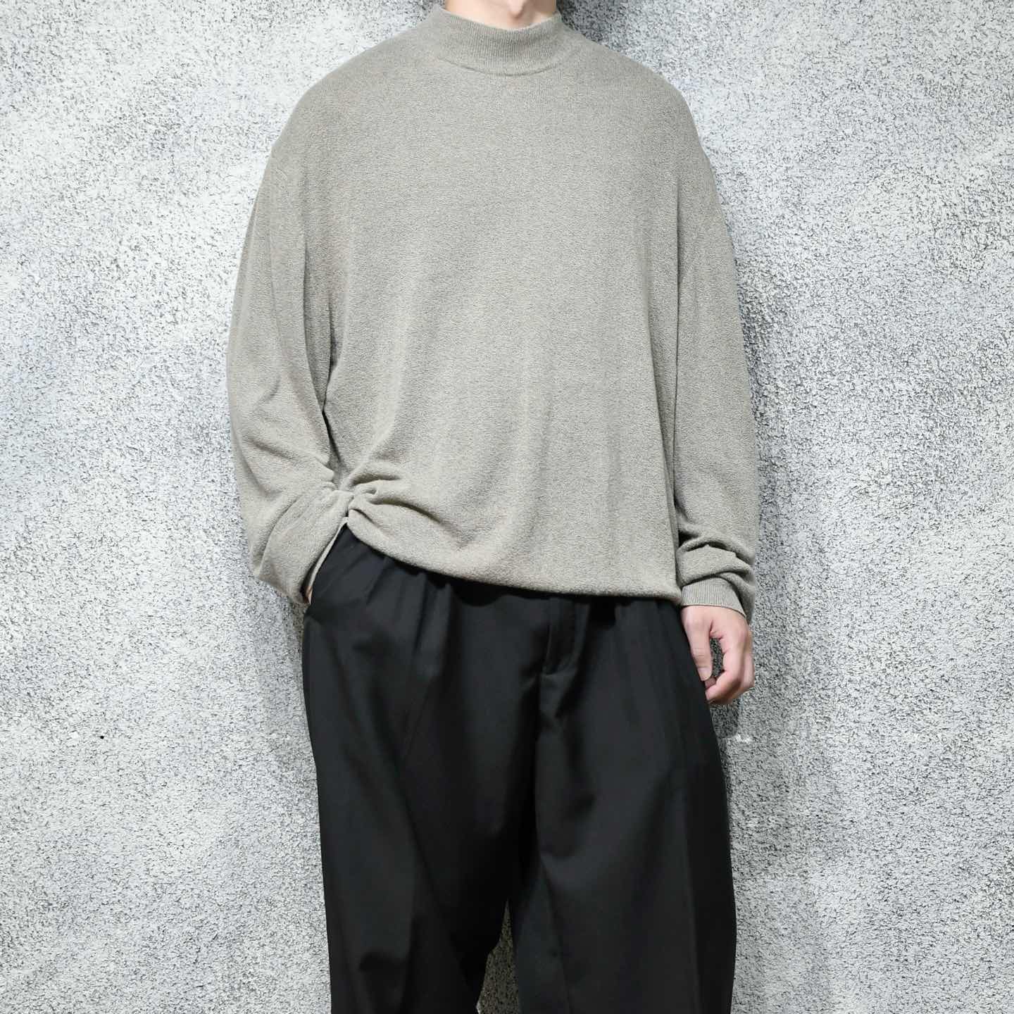 古着 モックネック レーヨン ニット カットソー グレージュ セーター
