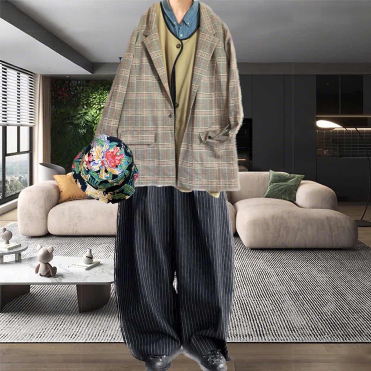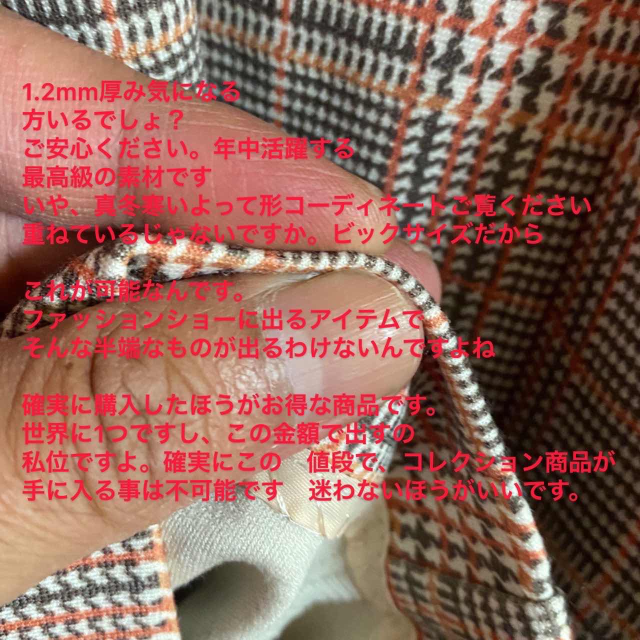 新品未使用 LAデザイナー Glen Check collection JKT collection ファッションショーの事 LAデザイナーのファッションショーで使用した グレンチェックのオーバーサイズのジャケットです 世界に1つが、あなたの手に しかも新品未使用です モデルが着用した位で かなりきれい。 外では絶対手に入りません。また ファッションショーは、毎年違うスタンスをやるので、確実に今年のスタンスに マッチする かっこいいシルエットとオーバーサイズになっております 他の商品とめちゃくちゃコーディネートしてますので 余裕がある人は、まとめ買いした方が逆にお得です コーディネーター完全にfudge よりです。 ちなみに、画像見たらわかりますが、通年活躍しますので、今飼っていた方がお買い得!! 最後に素材的に丸洗いできるので、ケアコストなし、 さらにはしてもらえますと、確実にこのデザイナのはこの金額では買えません。 では早めの検討よろしくお願いします。確実にガンガン値上がりします。!! ▷color◁ 写真通りチェック ※ブラウザで異なる場合ありますがかなり実物近づけるため、外、室内、バック壁画が 統一感ないのはご理解下さい ▷size◁ 平置き片面採寸【㎝表記】 表記size キングサイズなんで着丈のみ明記 それ以外は、着用の雰囲気で変わります 更に羽織りタイプで、着丈以外気にするのは、 激しく無意味です、ので、明記しません、 着丈/89 身幅/70 肩幅/60 袖丈 /65 DSは袖はハンガー採寸 ※多少の誤差は理解下さい モデル170センチ 普通体型 【参考例TシャツMがジャストくらい】 私がきて、かなりオーバーサイズ 【素材】 ウレタン系とおもわれます、可能 【状態】 新品ですが、希望あるなら、選択発送します、