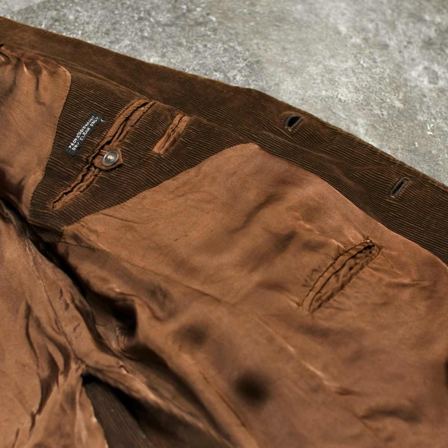 SIZE:- 着丈79cm 肩幅49cm 身幅62cm 袖丈59cm fabric/cotton made in Romania 着用画像 177cm/64kg ルーマニアにて仕立てられたコーデュロイの テーラードジャケット。 本来フォーマルなアイテムには、 マイナスなイメージになりやすい"状態"ですが、 こちらはコーデュロイだからこそ、 元々の雰囲気を越えて、昇華した逸品です。 ここまでフォーマルになり過ぎずに着れる、 タウンユースなテーラードジャケットとして 手元にどうでしょう。 パンツはスラックスに限らず、チノパンなんかで よりカジュアルダウンさせるのも◎ ※裏地に直し箇所あり。 ※撮影状況により、実物と多少色が異なる場合が ございます。 ※古着を取り扱っているため、気づかない汚れや ほつれ等がある場合がございます。 ※サイズは着用感で選んでおり、 表記サイズではございません。 表記サイズは説明欄の最初に記載しております。 古着 オーバーサイズ old vintage ヴィンテージ used 80's 90's POLO RALPH LAUREN Eddie Bauer OLD GAP LANDS' END ランズエンド LLBean エルエルビーン オールドギャップ エディーバウアー ラルフローレン ブルックスブラザーズ Brooks Brothers 茶色 コーデュロイジャケット サンフェード などがお好きな方 #vintage #オーバーサイズ #old #used #90s #80s #古着 #ヴィンテージ #LLBean #エルエルビーン #EddieBauer #エディーバウアー #oldgap #オールドギャップ #LANDSEND #ラルフローレン #POLORALPHLAUREN #ブルックスブラザーズ #BrooksBrothers #テーラードジャケット #フェード #コーデュロイジャケット #サンフェード