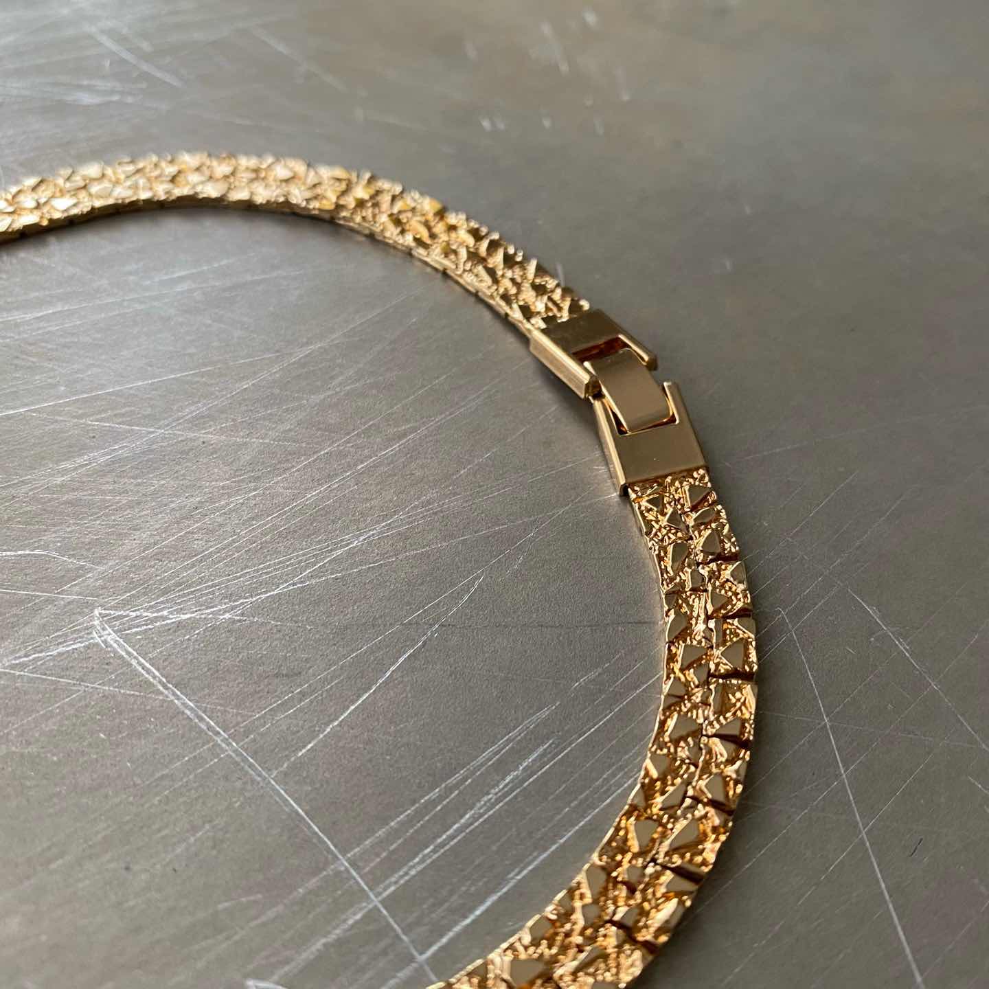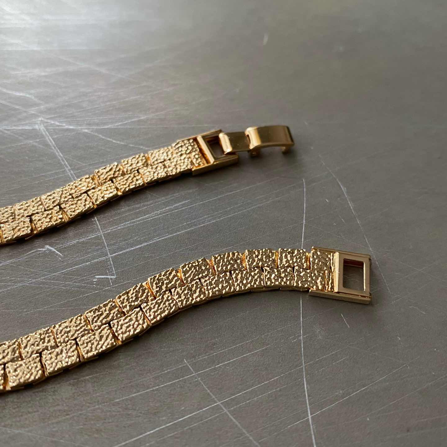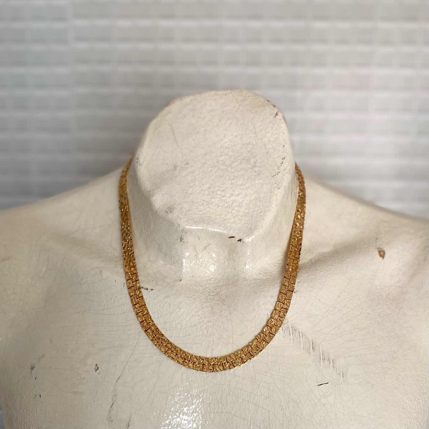 クラシカルな雰囲気のUSAヴィンテージネックレス。フラットチェーンの表面にレトロなテスクチャーが入られた個性的なデザインです。シンプルながら存在感があり様々なスタイルに合わせていただけます。 □Materials メタル(ゴールドメッキ) □Size 全長 約51㎝ チェーン幅 約8㎜ 40g □Condition【A】 使用感の少ない良好な状態です。中古品であることをご理解のうえお買い求めください。ご購入前に必ずショッピングガイドのご確認をお願いいたします。 【S】未使用 【A】未使用に近い 【B】やや使用感あり 【C】使用感あり Item No.3356