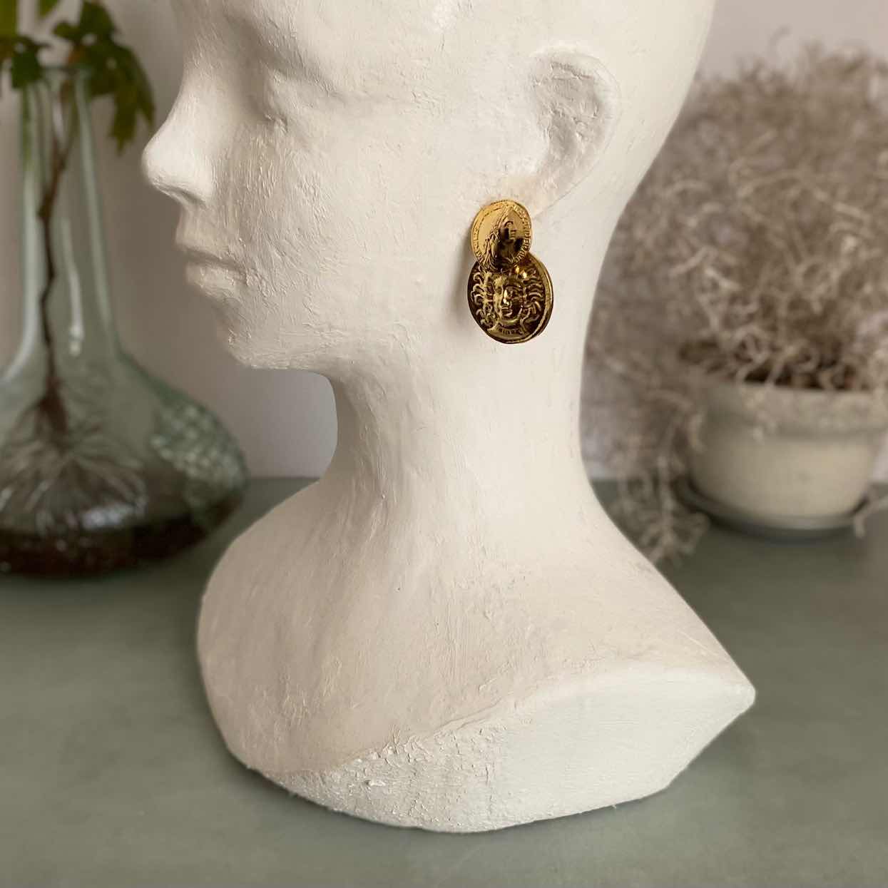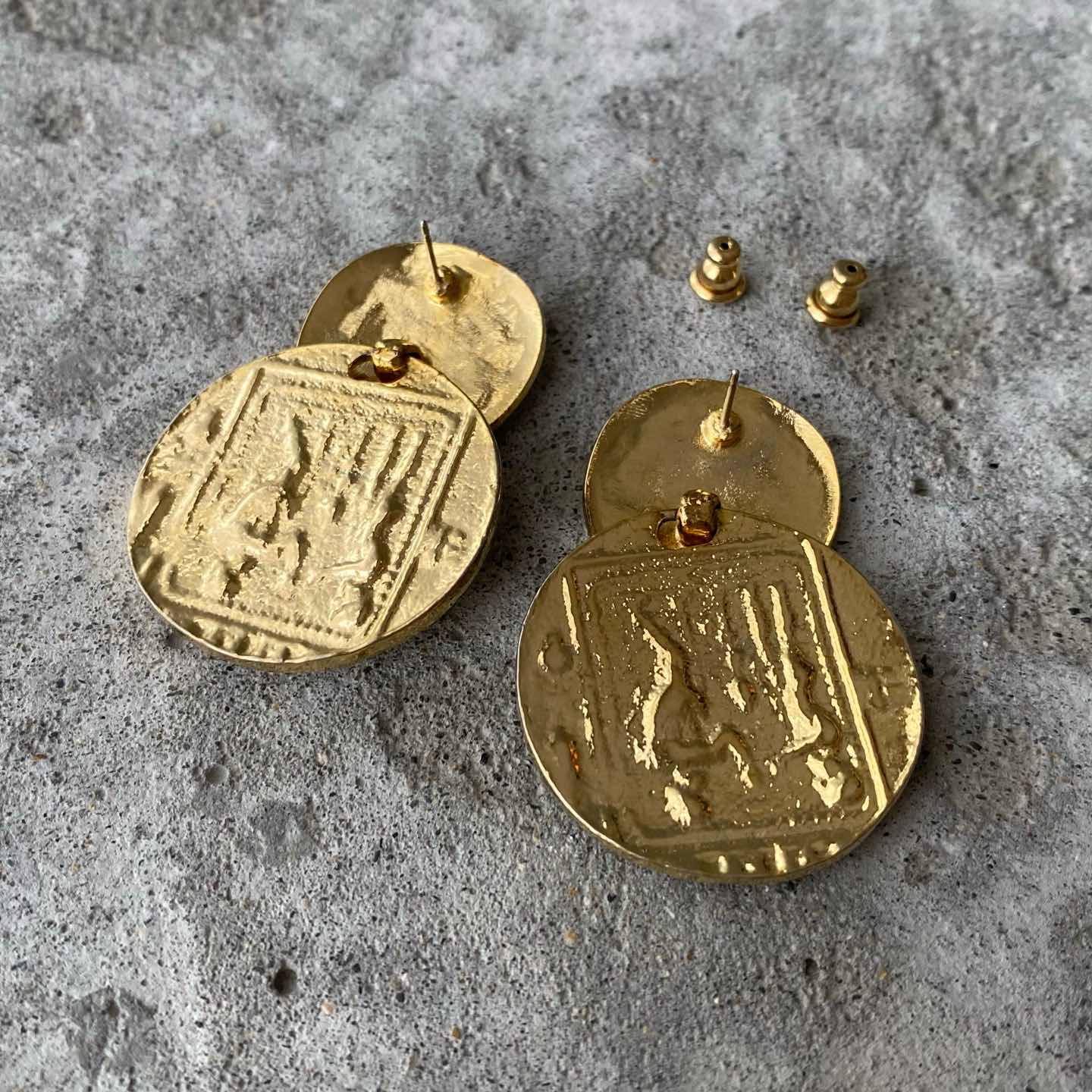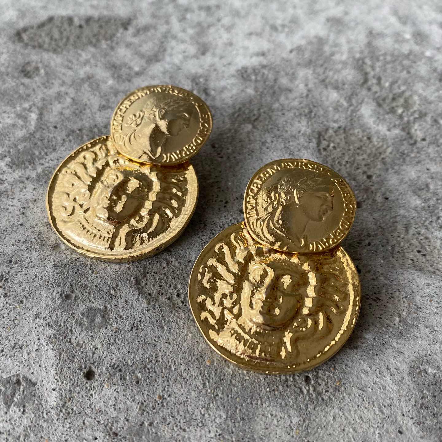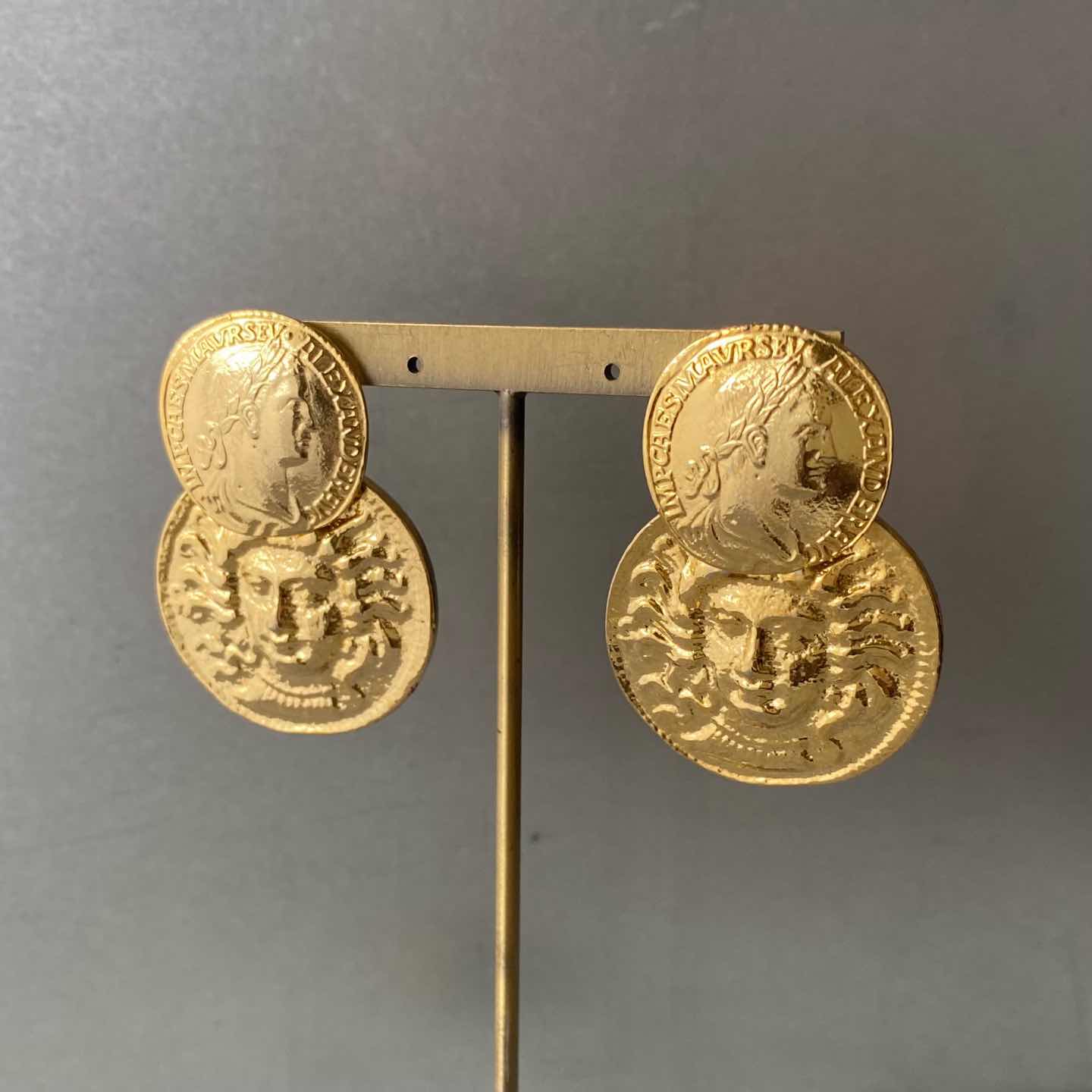大きなコインが揺らめくレトロなデザインのUSAヴィンテージピアス。存在感がありスタイリングのアクセントにおすすめです。 □Materials メタル(ゴールドメッキ) □Size 約H4.5×W3.1㎝ 24g □Condition【A】 使用感の少ない良好なヴィンテージコンディションです。中古品であることをご理解のうえお買い求めください。ご購入前にショッピングガイドのご確認をお願いいたします。 【S】未使用 【A】未使用に近い 【B】やや使用感あり 【C】使用感あり Item No.3363