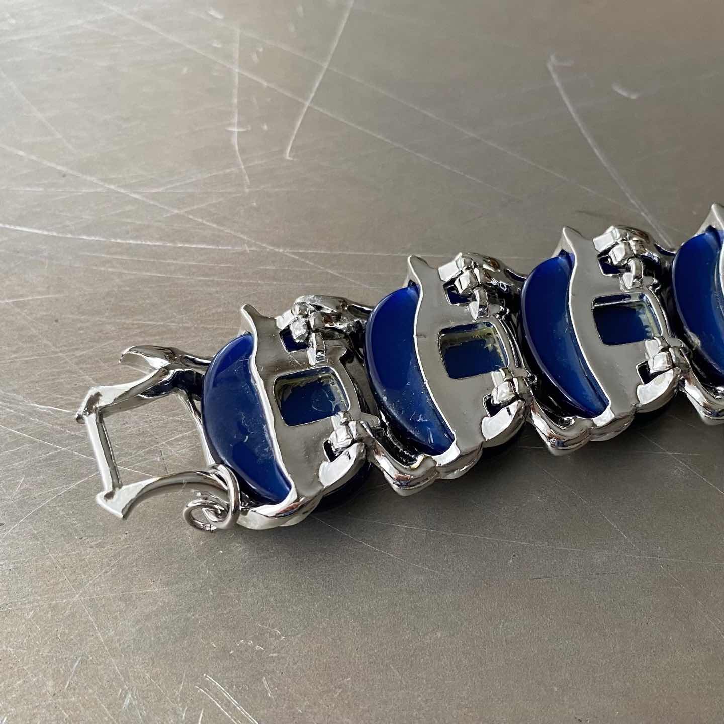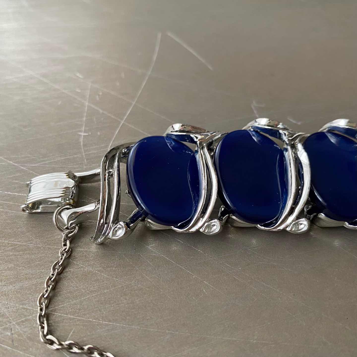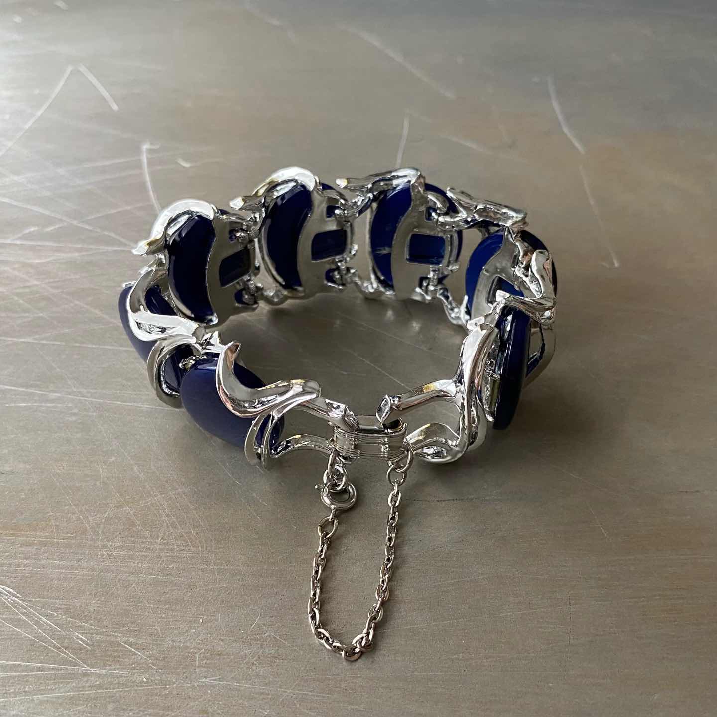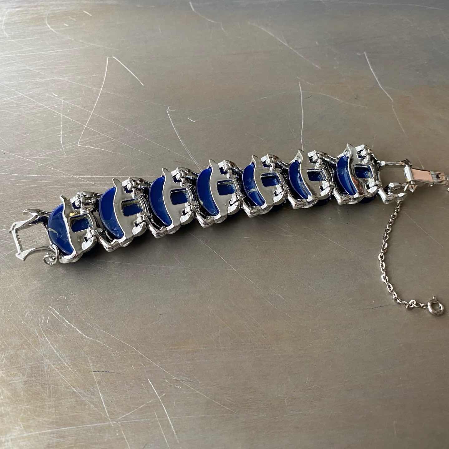 Vintage 60s USA retro navy blue oval stone classical design bracelet