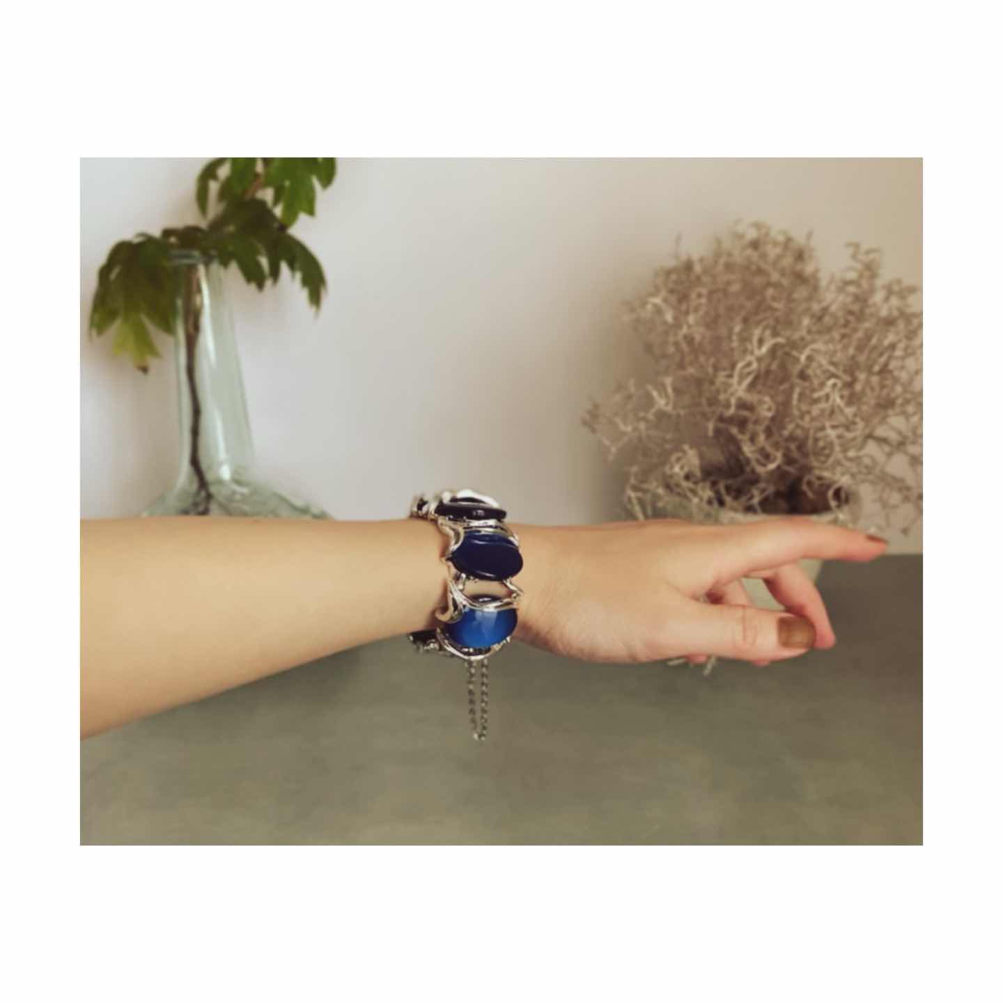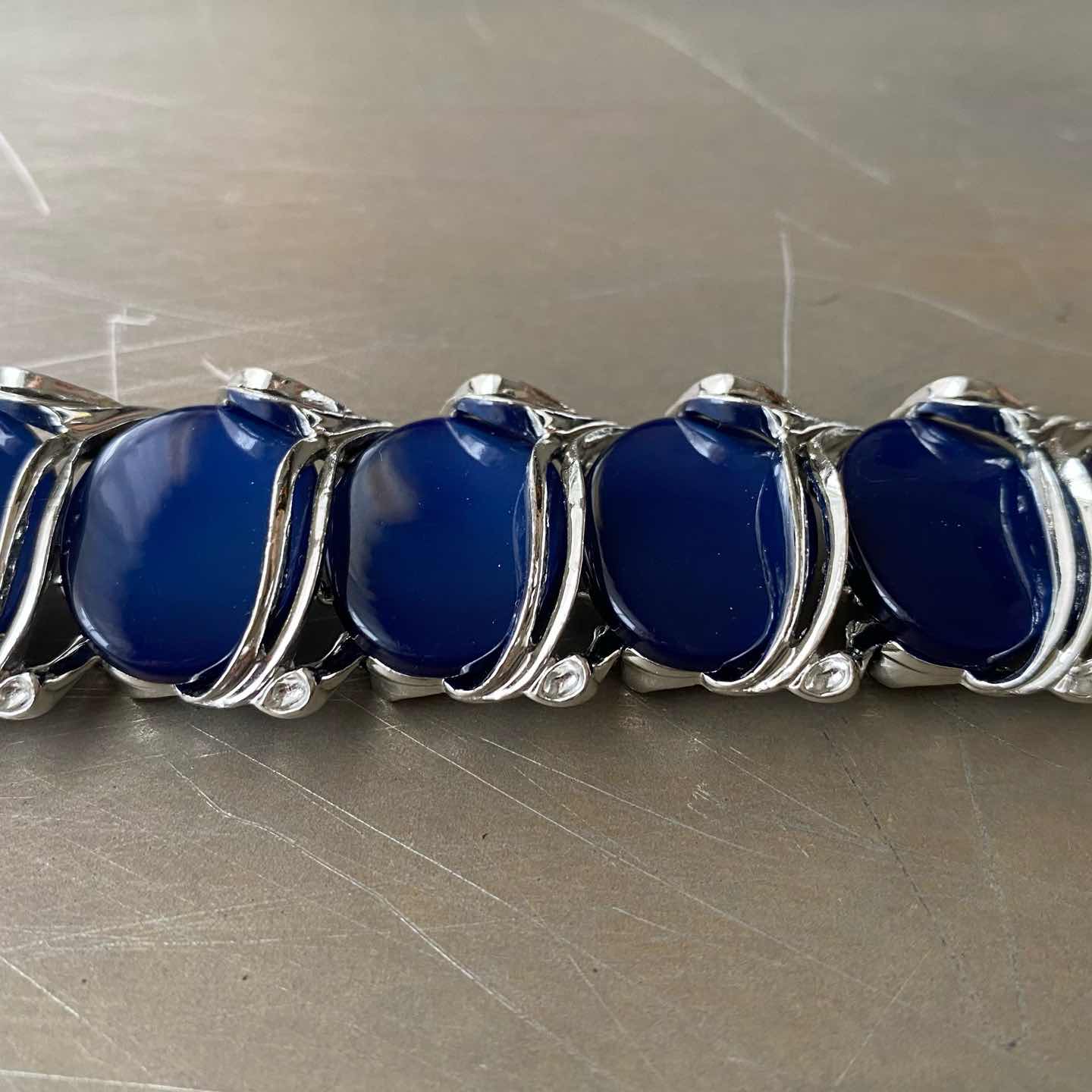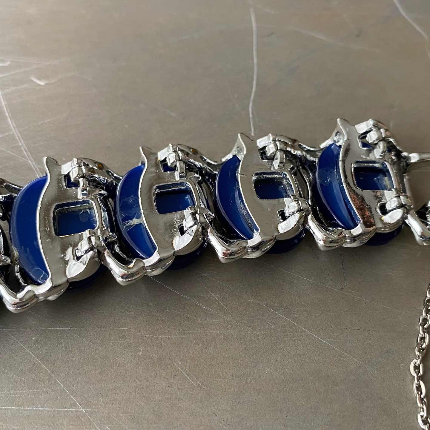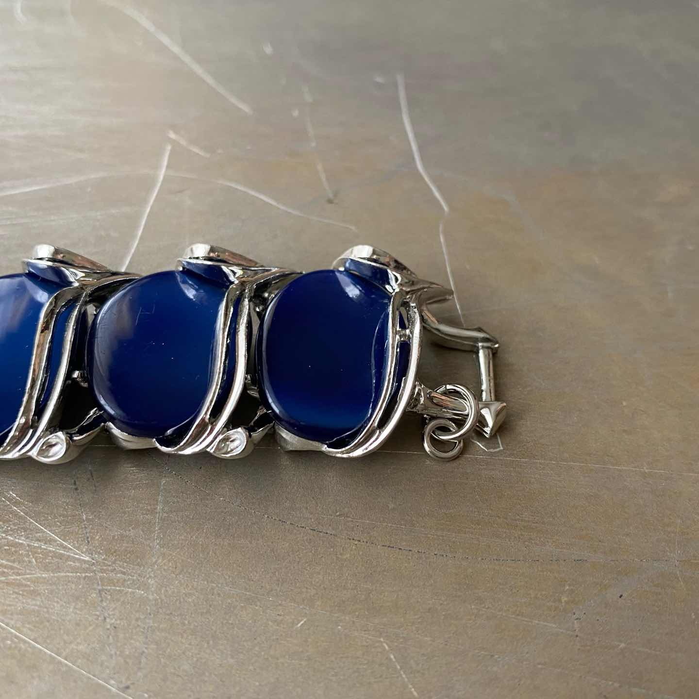 Vintage 60s USA retro navy blue oval stone classical design bracelet