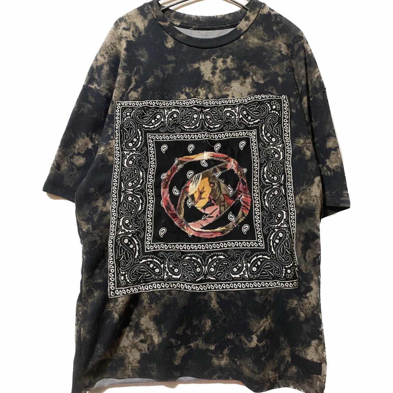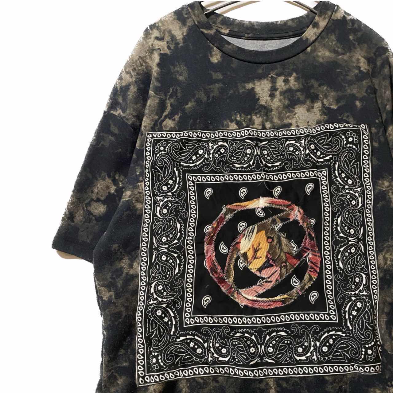 90s Spain made remake 染め 縫、フリーメイソン XL 90年代ヴィンテージのスペイン制 それを使い クラスター風に染め上げ 笑正直、素材良すぎてこれが、1番手間かかりました笑 バンダナをフロントに、縫い付け、Freemasons 秘密結社マークを、バンダナ柄が、見えるよう アフリカmaterialで、作ってぬいました、 カッコ良くしかも、染めまで、かなり、個性的な、柄なったので、 一撃で魅了するTシャツが完成しました また、ビックサイズのメリットは、コーディネートご覧ください インナー スウェット仕込んでます。 年中活躍するんです。暑い時は1番でいいし、肌に張り付かないのですごい快適です コーディネートは、何回も使っている。本当に買ってよかった。FAT、ダブルネームワークパンツと最近買ったカーブボトム、コーディネート、 どんなボトムも確実にかっこよくなりますので お買い求めいただきましたら、すぐにコーディネートが楽しめますので、ぜひあなたの ファッションのアップデートにお楽しみ下さい また、作業工程ものせました ご覧下さい、 ▷color◁ 写真通り ※ブラウザで異なる場合ありますがかなり実物には、近づけてます、 ▷size◁ 平置き片面採寸【㎝表記】 表記size ワンサイズXLサイズ位です、 フリーと思ってもかまわないサイズでした^_^ 着丈/82 身幅/63 肩幅/62DS 袖丈 /39↓ DSは袖はハンガー採寸 ※多少の誤差は理解下さい 170センチ Mジャストの私が、着用してかなり、ゆったり、 【素材】 恐らく、マテリアルチェッカー使いましたが TC 混合綿に、ウレタン3-5です、シワならない、汗めだたない、乾きはやい、パーフェクトなやつに、アフリカンmaterial バンダナ 【状態】 不具合なく、良い お買い得品 #リメイク #タイダイ #SpainT