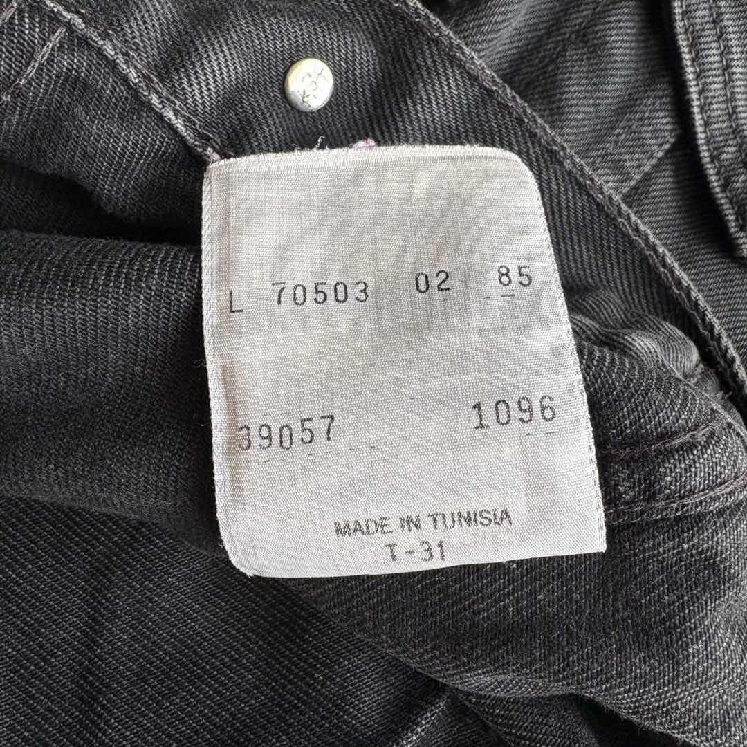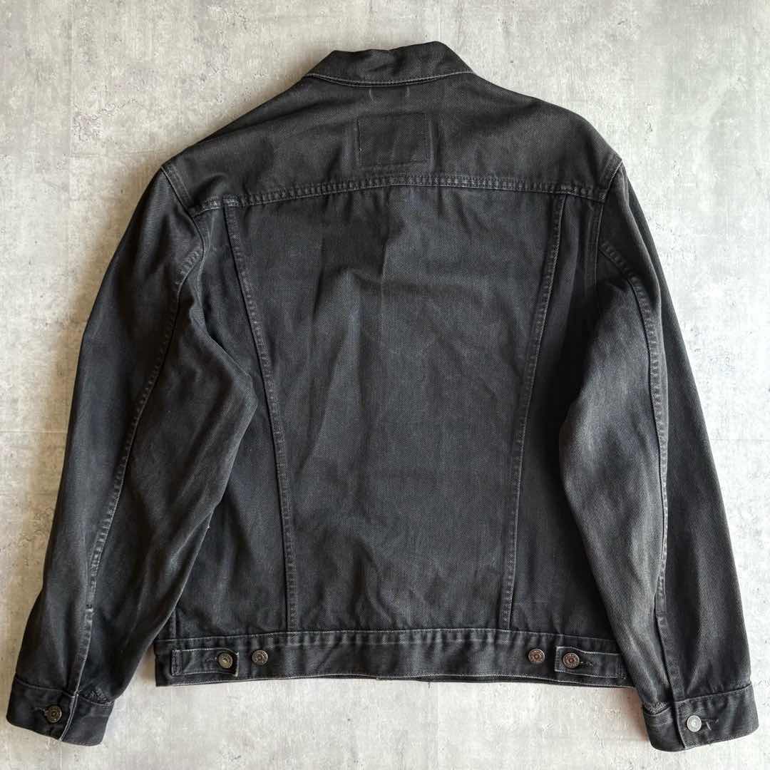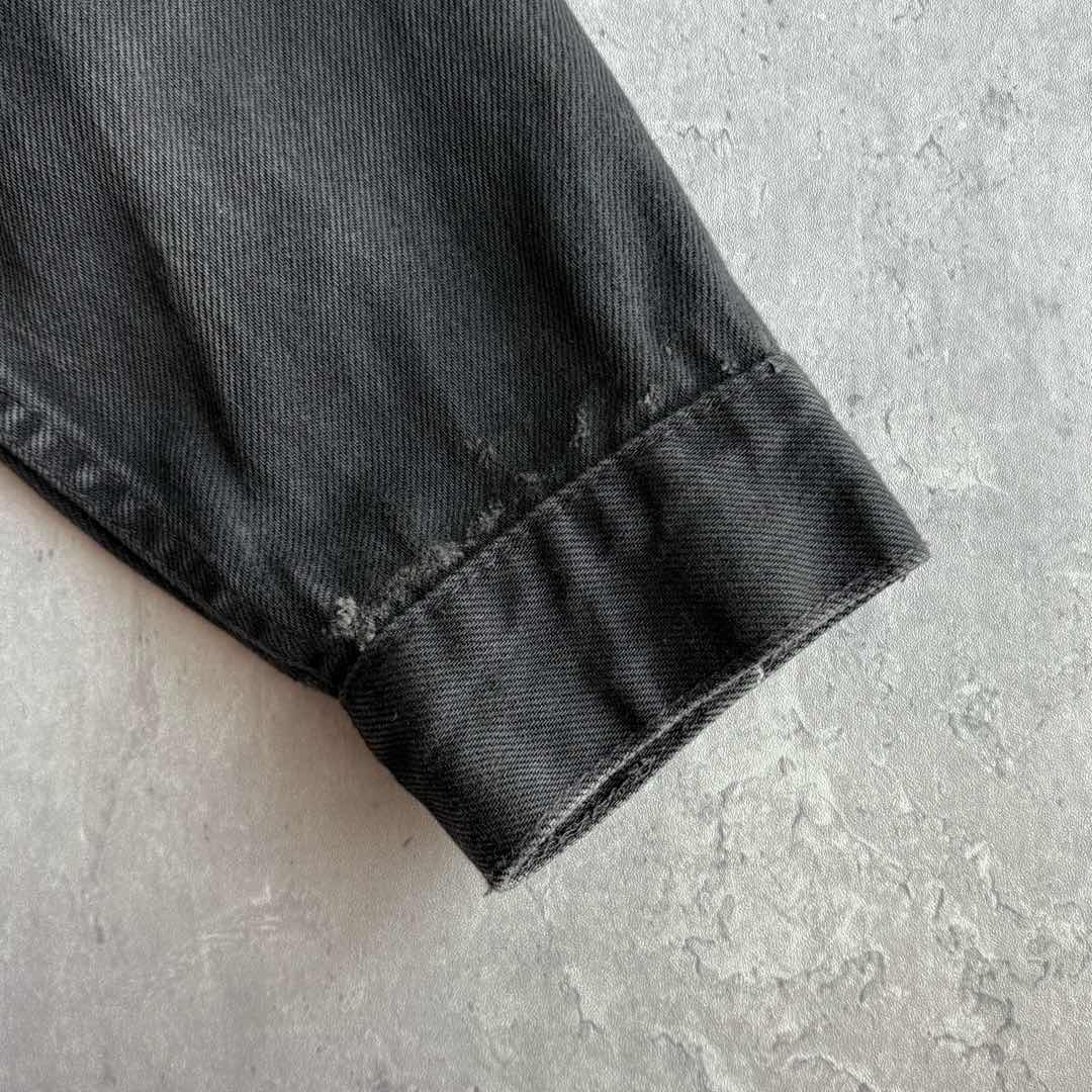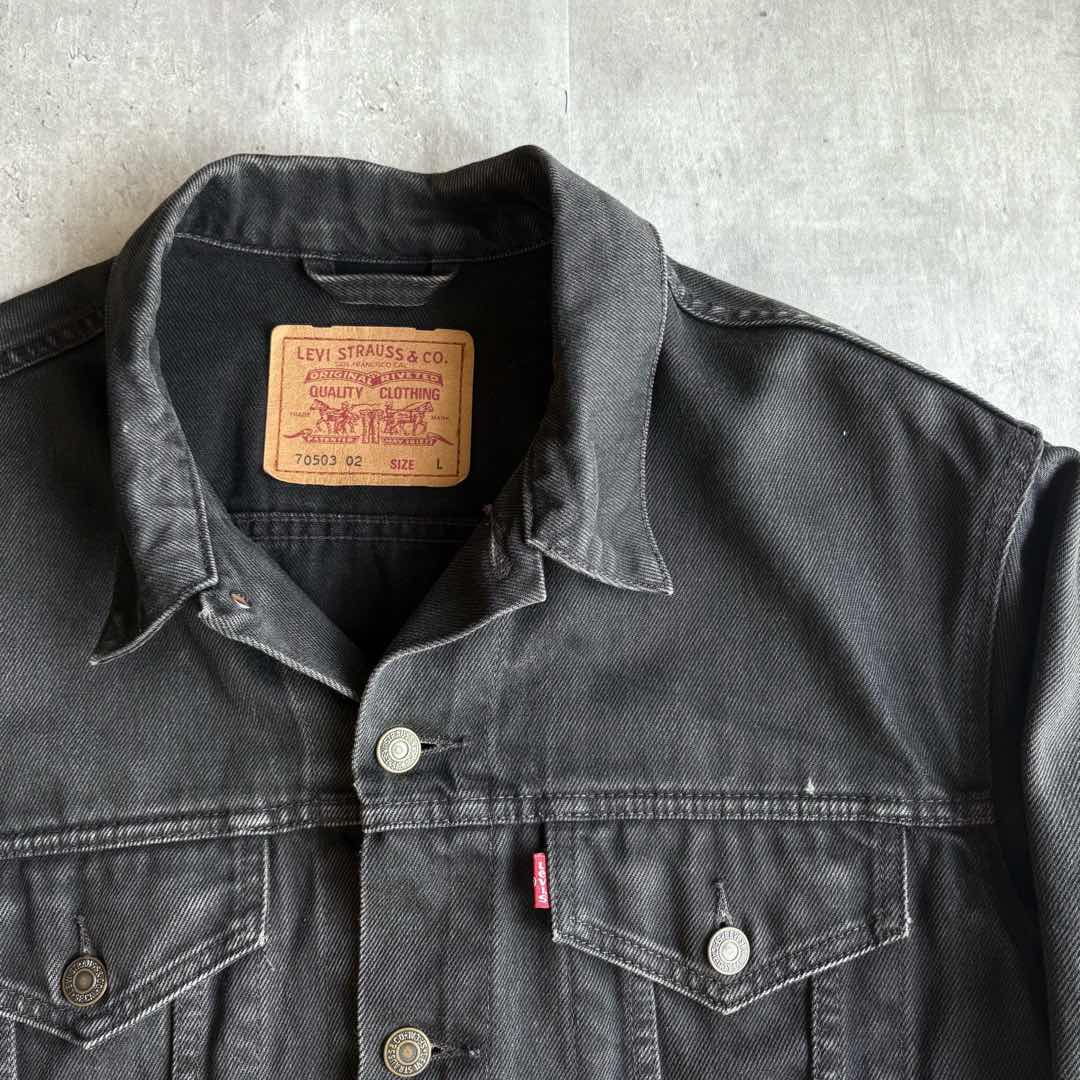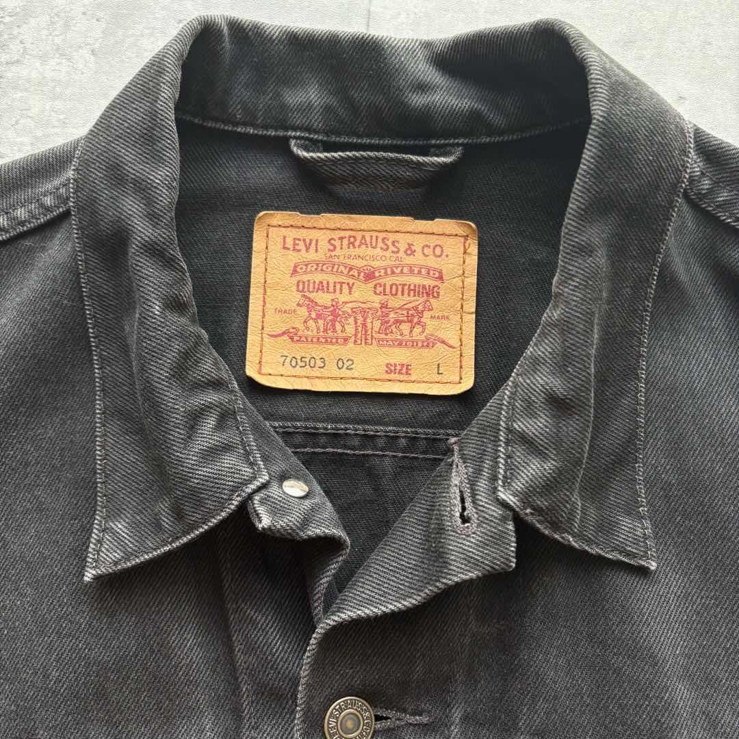 チュニジア製のユーロリーバイス"70503" 3rdタイプ以降に生産されたフロントの ハンドフォーマーポケットが特徴的なモデル 野暮ったくないすっきりとしたスタイリッシュなシルエットはユーロリーバイスならではですね デニムパンツと同様、価格高騰が止まらない ブラックデニムの中でも一段と色残りの良い一着 この機会に是非 size:L 着丈:65cm 身幅:60cm 肩幅:52cm 袖丈:61cm ※採寸に若干の誤差がある場合がございます。 何卒ご了承ください。 細かなダメージなどは写真をご参照下さい 出品中の写真につきましては、できるだけ実物の色に近くなるように努めており、日中の自然光にて撮影ですが、色の見え方が実物と若干異なる場合がございます。予めご了承ください。 発送はエコと経費削減の為、簡易包装にて、発送予定です。 古着のため如何なる理由でも、返品不可とさせていただきます。 双方にとって気持ちの良いお取引をさせていただけるように努めてまいりますので、ご理解いただけた方々のご購入をお待ちしております。 他のサイトでも出品していますので、先にご購入いただいた方優先となっております。よろしくお願いします。 最後までお読みいただき、ありがとうございました。#vintage #vintage #90s #eurolevis