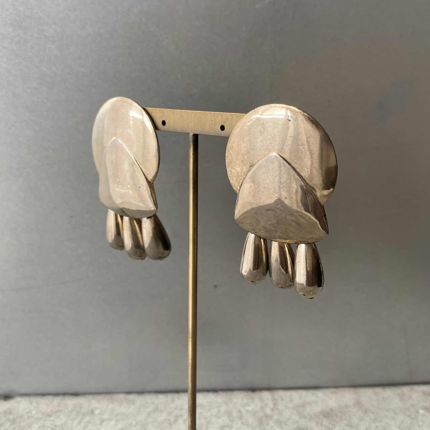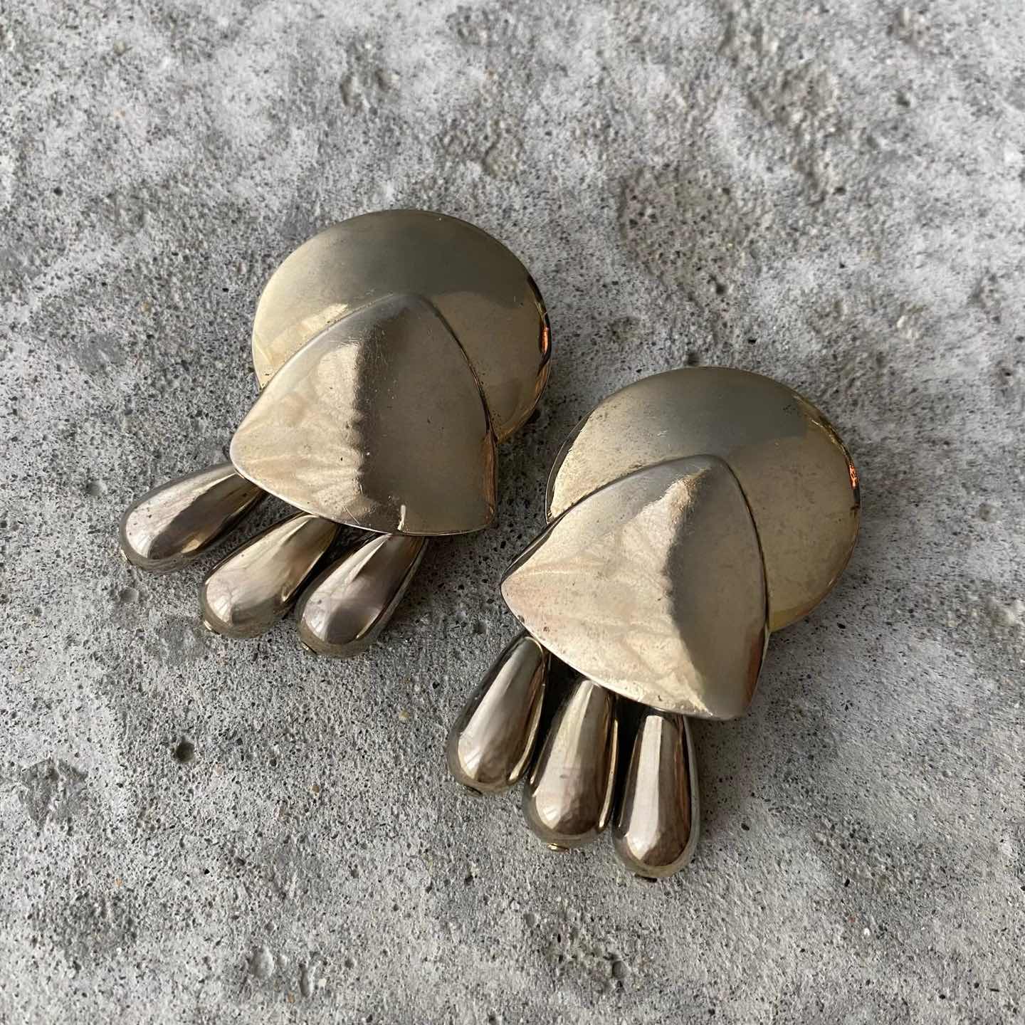 レトロモードな雰囲気のUSAヴィンテージピアス。メタルビーズが揺らめく個性的なデザイン。大ぶりで存在感がありスタイリングのポイントにおすすめです。 □Materials メタル(シルバーメッキ) □Size 約H5×W3㎝ 14g □Condition【C】 画像の通り全体的に変色や色ムラ、細かなスレ傷がみられます。古びた雰囲気がお好きな方におすすめです。中古品であることをご理解のうえお買い求めください。ご購入前に必ずショッピングガイドのご確認をお願いいたします。 【S】未使用 【A】未使用に近い 【B】やや使用感あり 【C】使用感あり Item No.3377