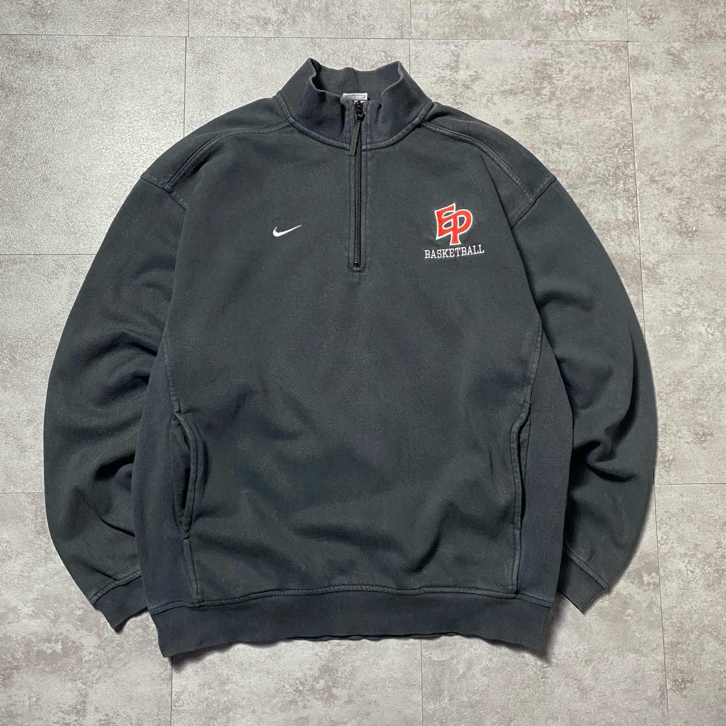 00s NIKE ナイキ スウォッシュ チーム刺繍ロゴ ハーフジップ ブラック スウェット