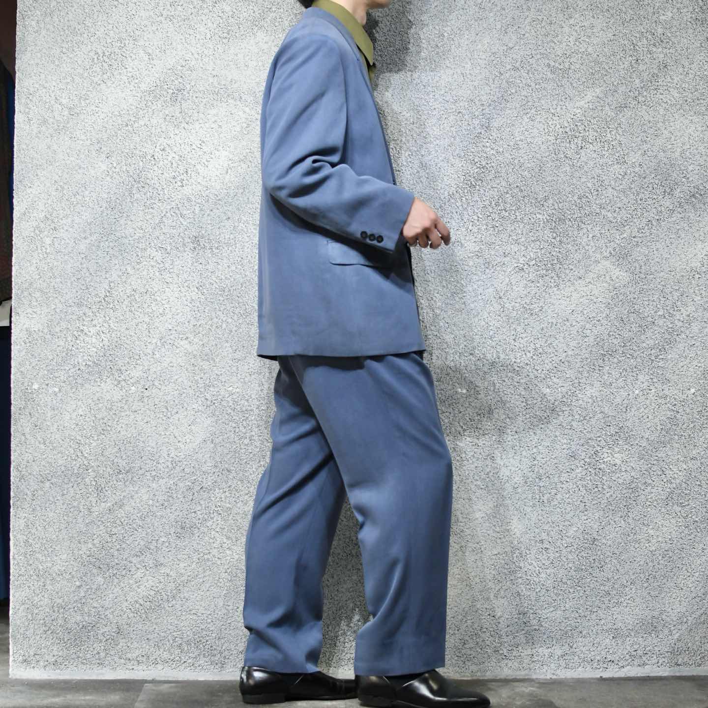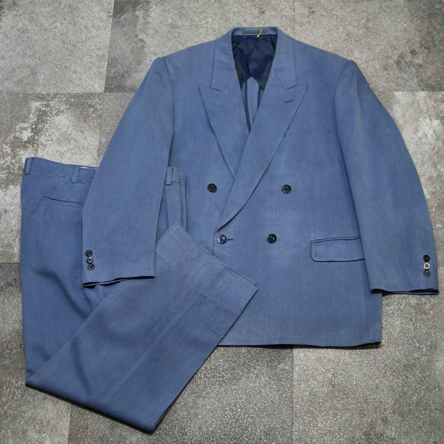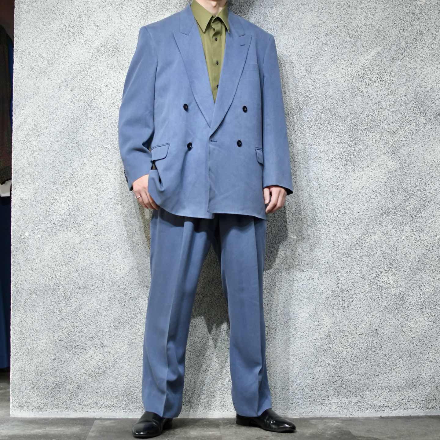 古着 スペシャル シルク セットアップ setup スーツ ダブル 青 ブルー