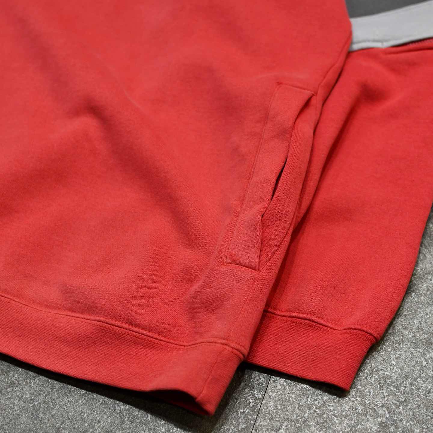 SIZE:L 着丈75cm 身幅68cm 裄丈95cm fabric/poly・cotton 着用画像 177cm/64kg 1960年アメリカ、カリフォルニア州で創業を 始めた”HANG TEN” 元々はサーフショーツが主なアイテムだった ようですが、その後カジュアルウェアをも 展開したブランドです。 個人的にあまりロゴどん系には 触れて来ませんでしたが、ややフェードした ボディやカラーリング、左アームに付くポケット、 ロゴの大きさなどに惹かれました。 どこか幼くも見えるロゴは小さめで、 さらにフェードすることでバランスの取れた 個体ではないでしょうか。 アームの太さや、丸みのあるシルエットも 良いですし、チノパンなんかと合わせたいなと 感じました。 好みで首元にダメージを入れるのも◎ ※裾付近に軽度の汚れあり。 ※撮影状況により、実物と多少色が異なる場合が ございます。 ※古着を取り扱っているため、気づかない汚れや ほつれ等がある場合がございます。 ※サイズは着用感で選んでおり、 表記サイズは説明欄の最初に記載しております。 オーバーサイズ old vintage ヴィンテージ used 80's 90's POLO RALPH LAUREN Eddie Bauer OLD GAP LANDS' END LLBean エルエルビーン エディーバウアー ラルフローレン ブルックスブラザーズ Brooks Brothers パーカー 赤 グレー 灰色 レッド ロゴ などがお好きな方 #vintage #オーバーサイズ #old #used #90s #80s #ヴィンテージ #LLBean #EddieBauer #エディーバウアー #oldgap #LANDSEND #ラルフローレン #POLORALPHLAUREN #ブルックスブラザーズ #BrooksBrothers #フーディ #HANGTEN #パーカー #ロゴ