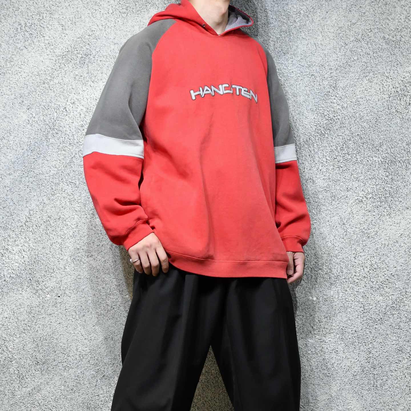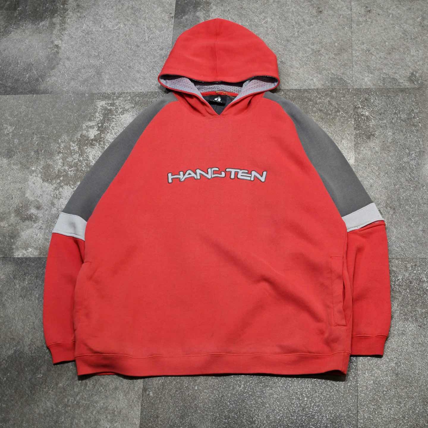 古着 HANG TEN フェード フーディ ロゴ アームポケット プルオーバー