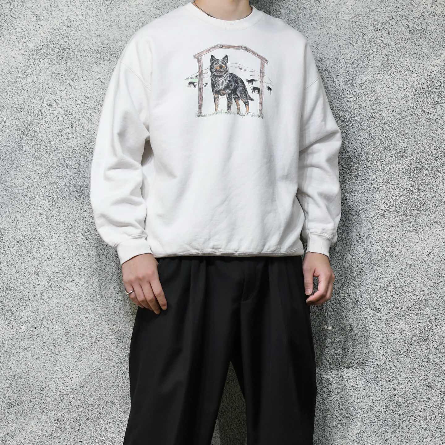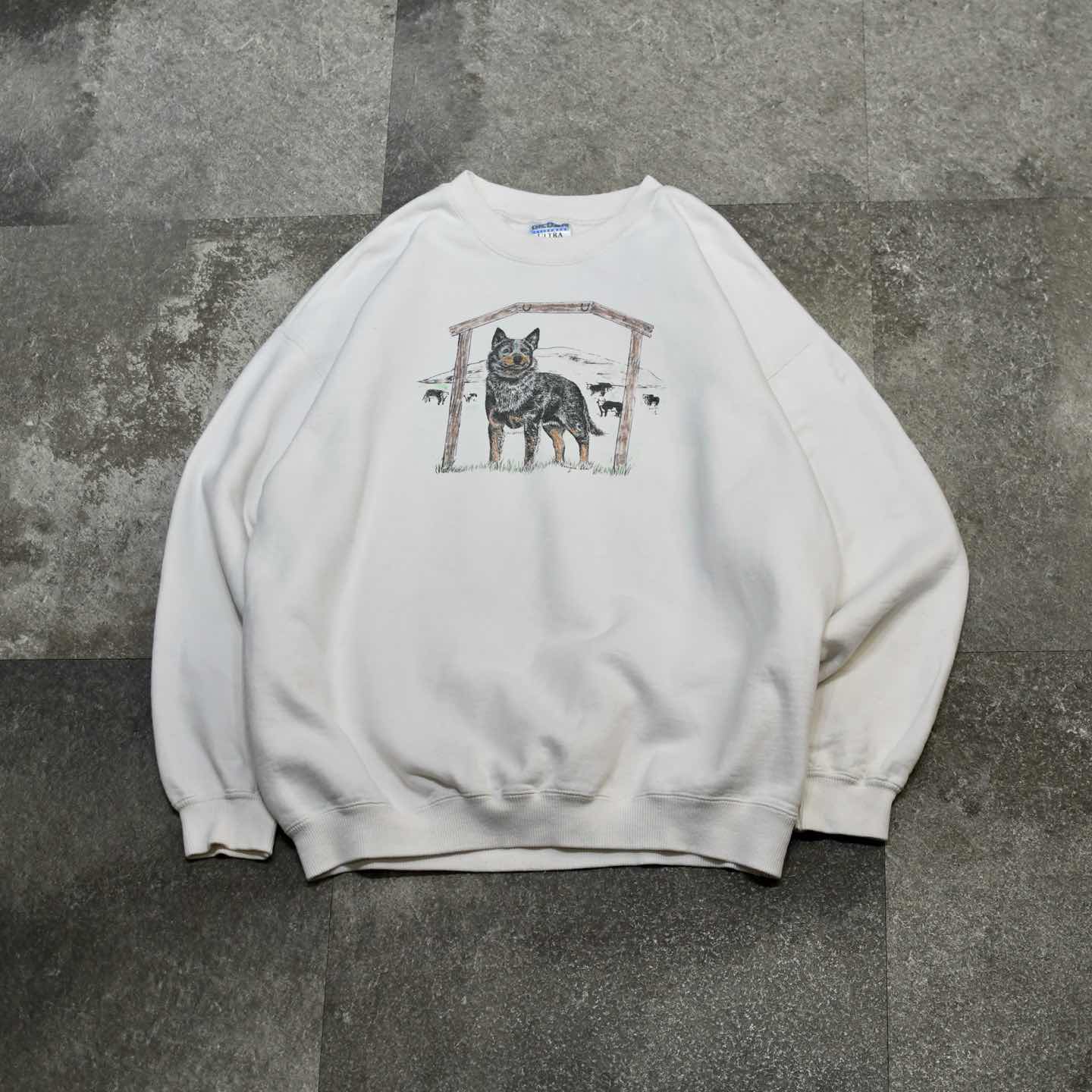古着 アニマルスウェット 犬 プリントスウェット スウェット トレーナー グレー