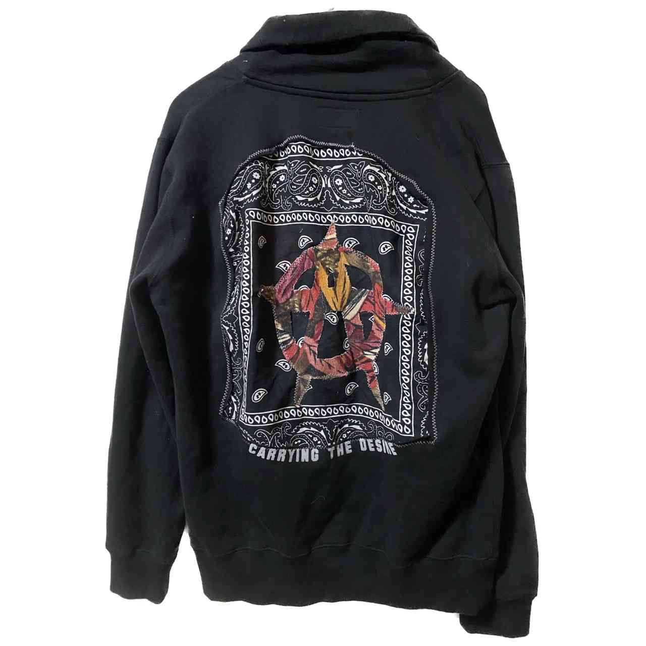 00s ヴィンテージ アンチスタイルリメイク ショールカラージャケットXL 普通のものに価値を加えるアンチスタイル リメイク スウェット素材のようなショールカラーのジャケットをフルリメイクしました 保温性と通気性を考慮して バッグ をざっくりと切り抜き バンダナ 裏から縫い付け アナーキーマークを施しました さらにフロントはデザイン性のあるマテリアルを縫い付け デザイン性を考慮しました 後ろにはロゴも残しており かなり かっこいい作りとなっておりますので お気に召した方のお気に入りになってくれると嬉しいです コーディネートネオ アメカジスタイルです いかつめの中にセンスが光る 大人コーディネートとなっております ▷color◁ ブラック ※ブラウザで異なる場合ありますがかなり実物には、近づけてます、 ▷size◁ 平置き片面採寸【㎝表記】 表記sizeXL にしました 着丈/69 身幅/60 肩幅/58DS 袖丈 /63 DSは袖はハンガー採寸 ※多少の誤差は理解下さい 170/Mジャスト体型の私が着て、✔️参考に ジャスト オーバーサイズ✔️ ビックサイズ 【素材】 スウェットよりのコットン 【状態】 最強 検品、洗濯、検品で、3回チェックして発送しますので、ご安心して、お買い求め下さい!! #vintage #90s #古着男子 #remake