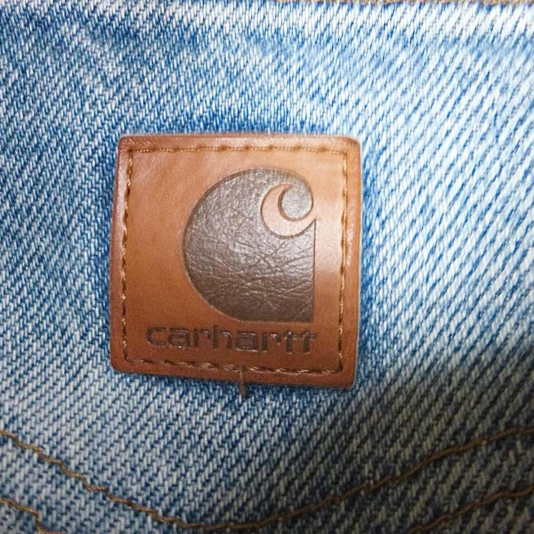 Carhartt 38×32 ライトブルー デニム 古着 レザーパッチ