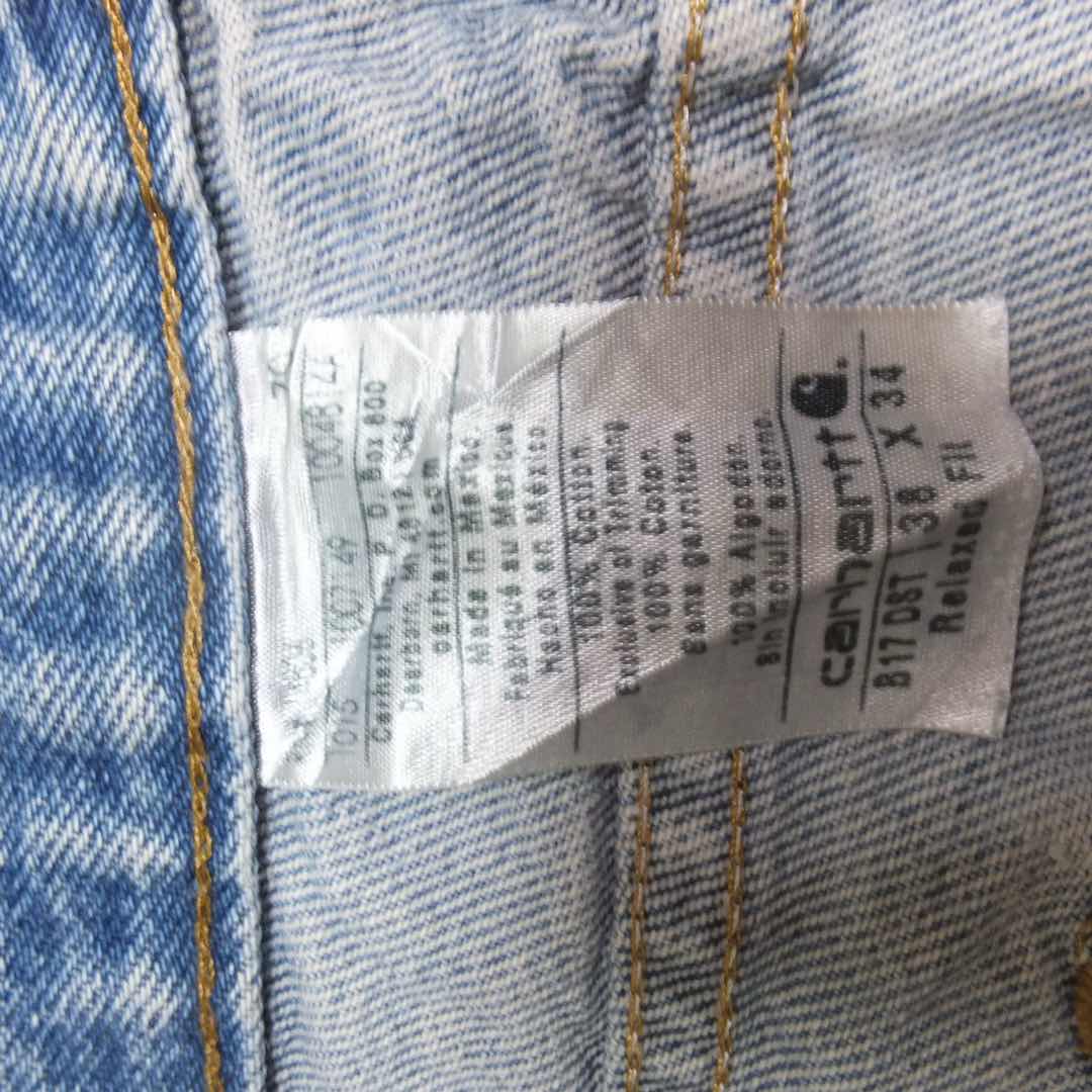 Carhartt 38×34 ライトブルー デニム 古着 レザーパッチ