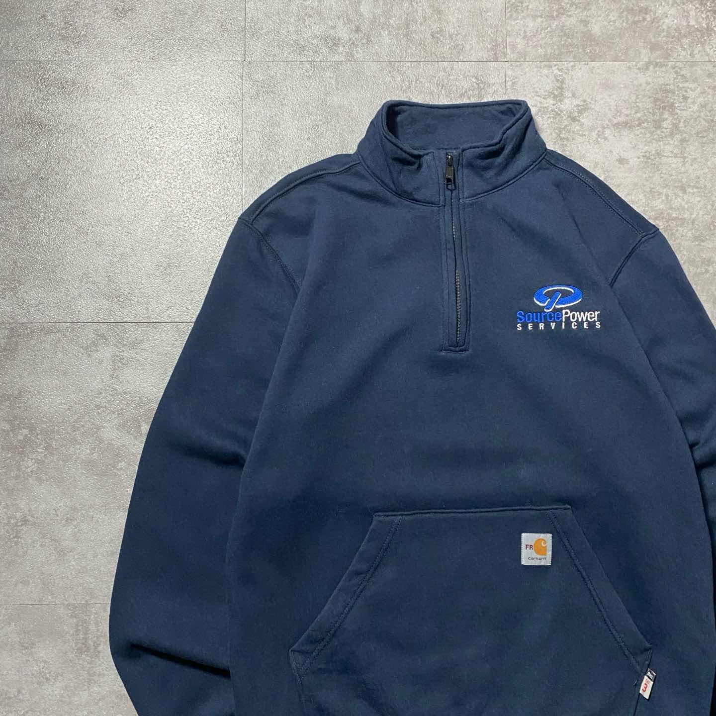 carhartt FR ハーフジップ 刺繍企業ロゴ ネイビー スウェット