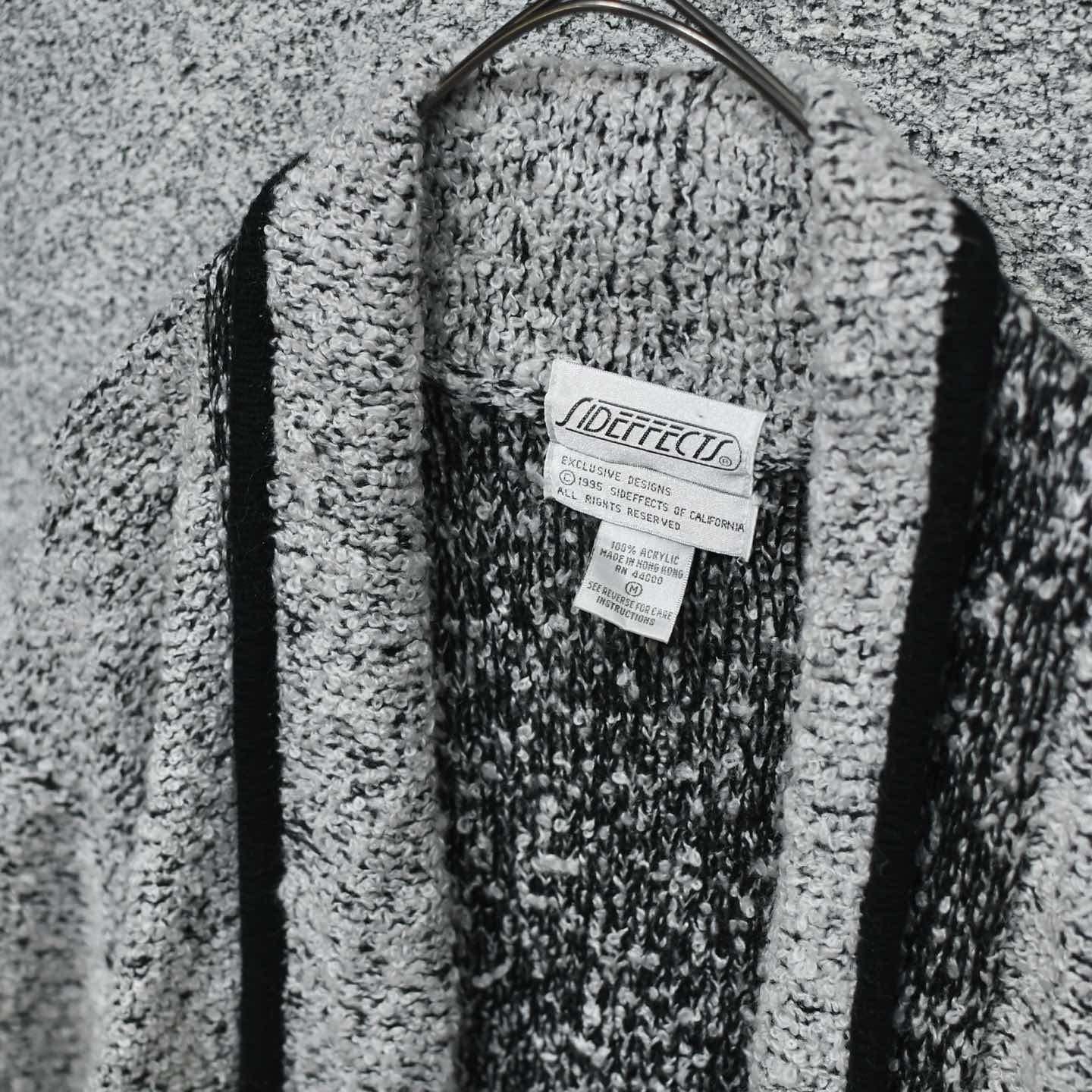 古着 デザイン カーディガン 羽織り ガウン パイルニット セーター グレー