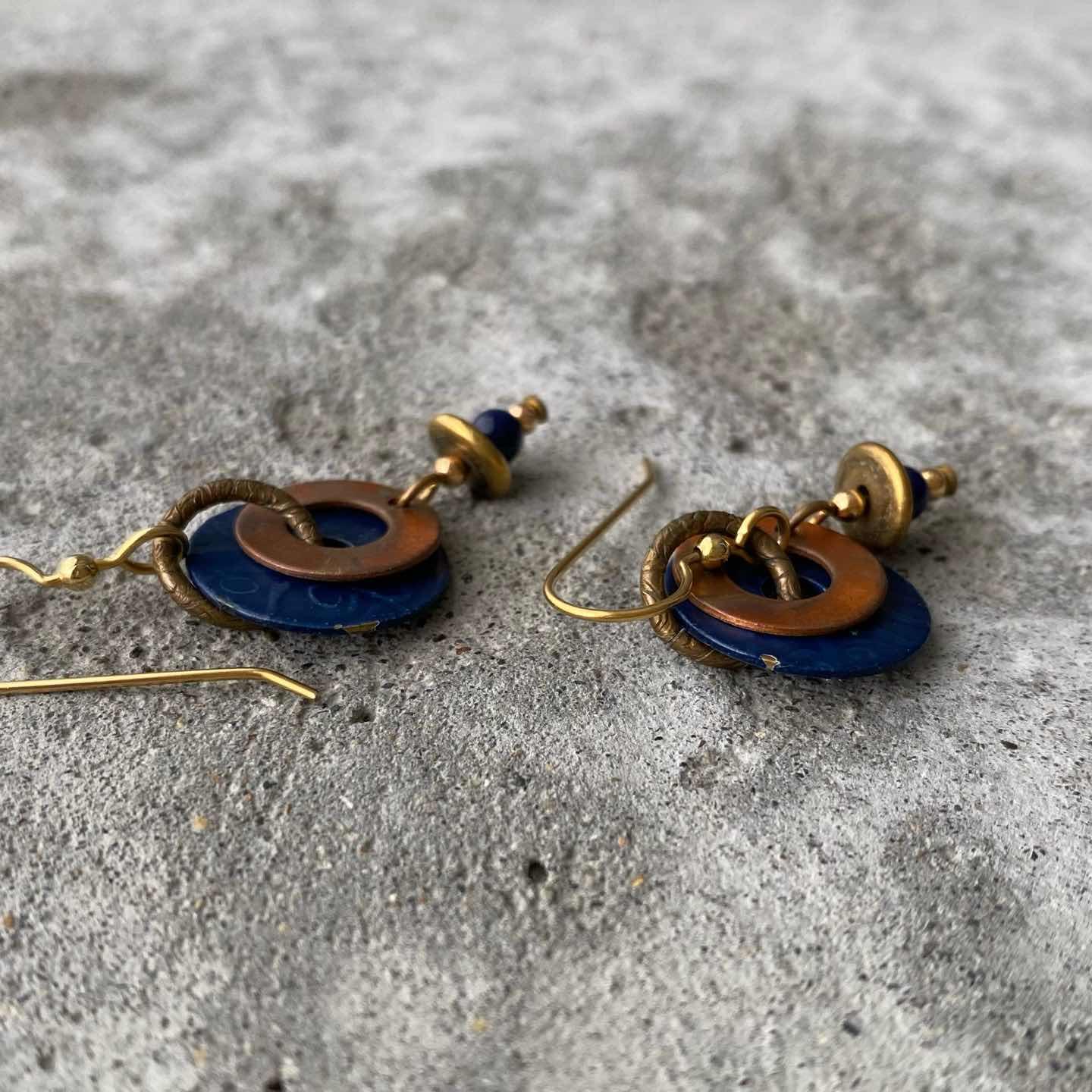 クラフト感のある作りが魅力的なUSAヴィンテージピアス。古びたメタルの色味も素敵な雰囲気。身につけやすいサイズ感で、スタイリングにお洒落な印象をプラスしてくれます。 □Materials メタル(メッキ・塗装)、ビーズ □Size 約H4.5×W1.6㎝ 6g □Condition【C】 経年によるメッキ変色やパーツの一部に塗装剥がれがみられます。古びた雰囲気がお好きな方にオススメです。中古品であることをご理解のうえお買い求めください。ご購入前に必ずショッピングガイドのご確認をお願いいたします。 【S】未使用 【A】未使用に近い 【B】やや使用感あり 【C】使用感あり Item No.3587