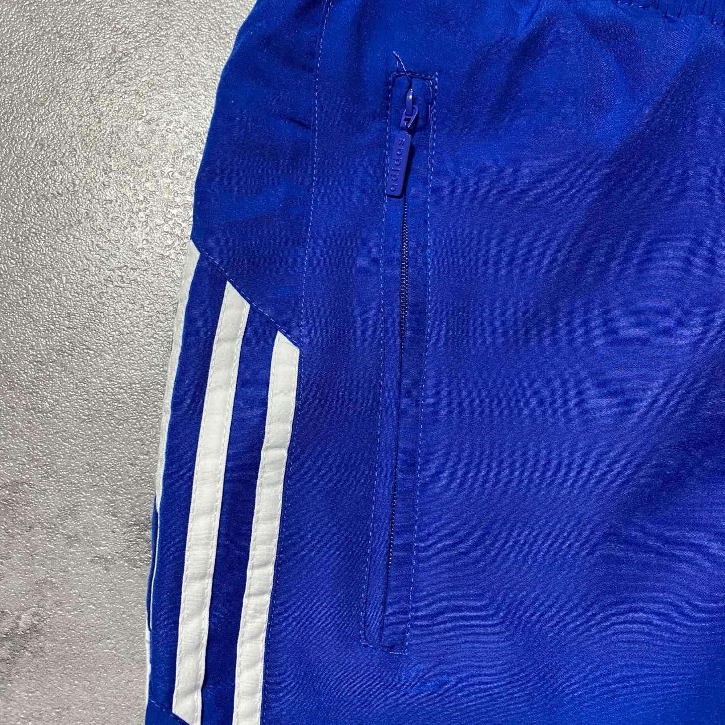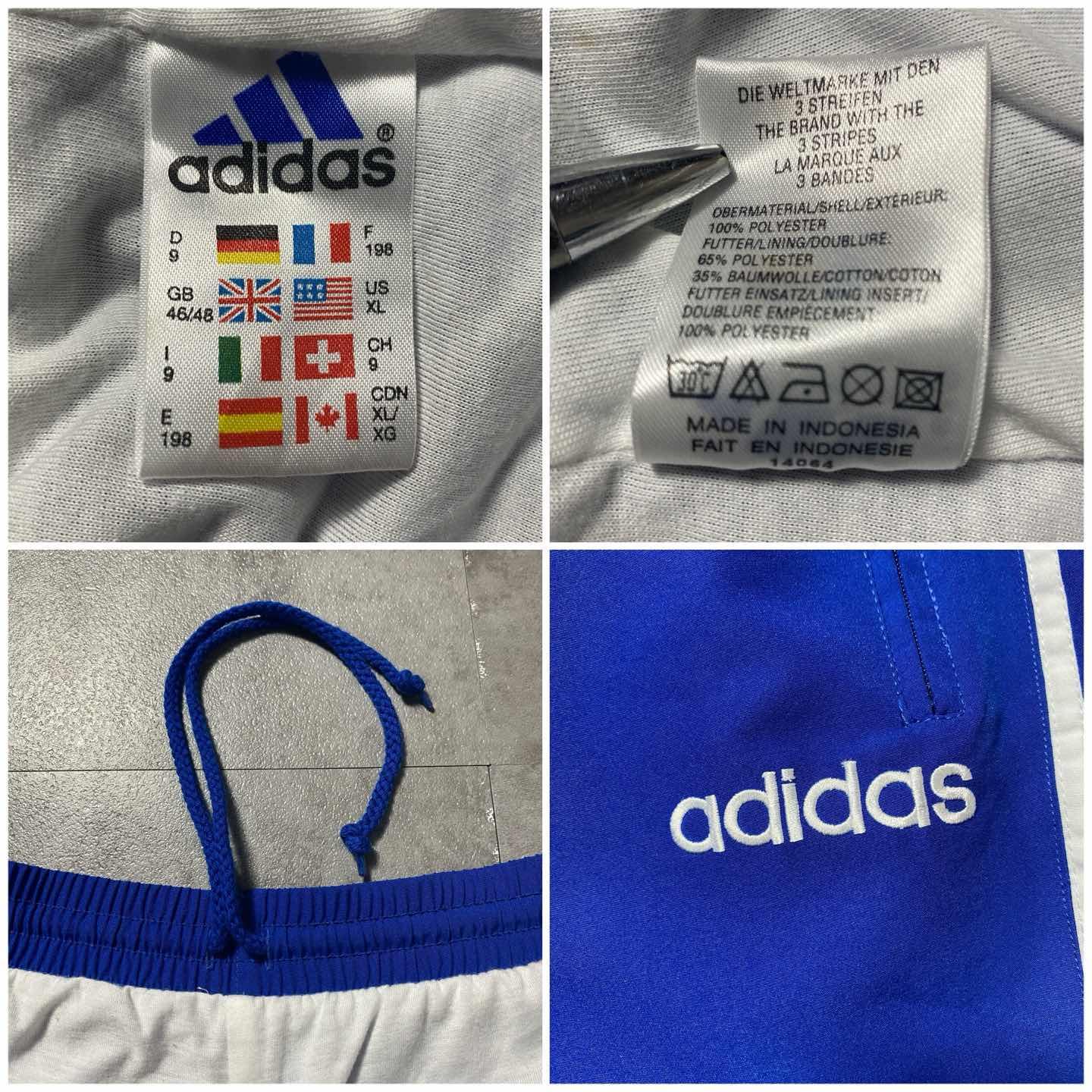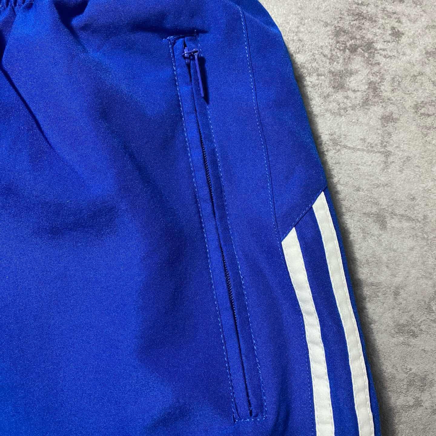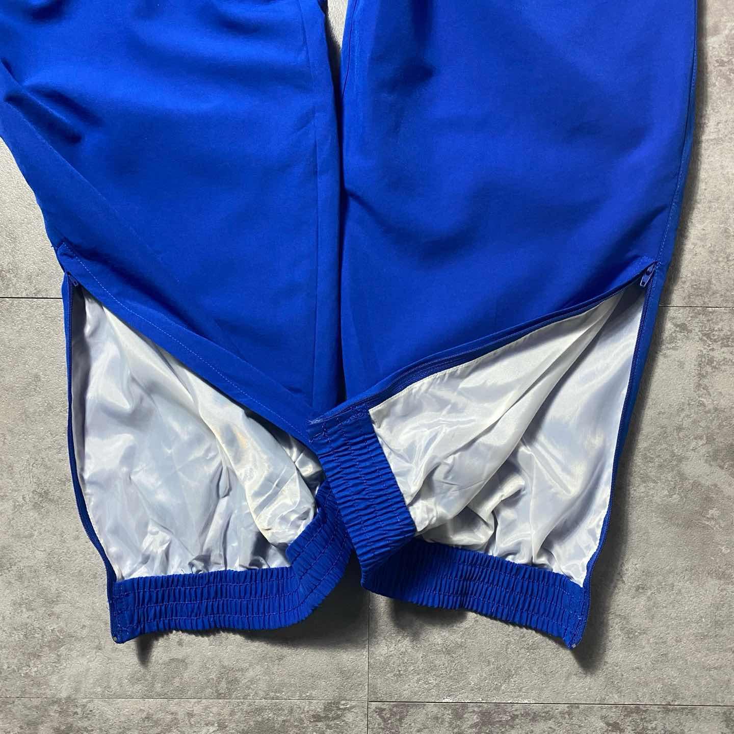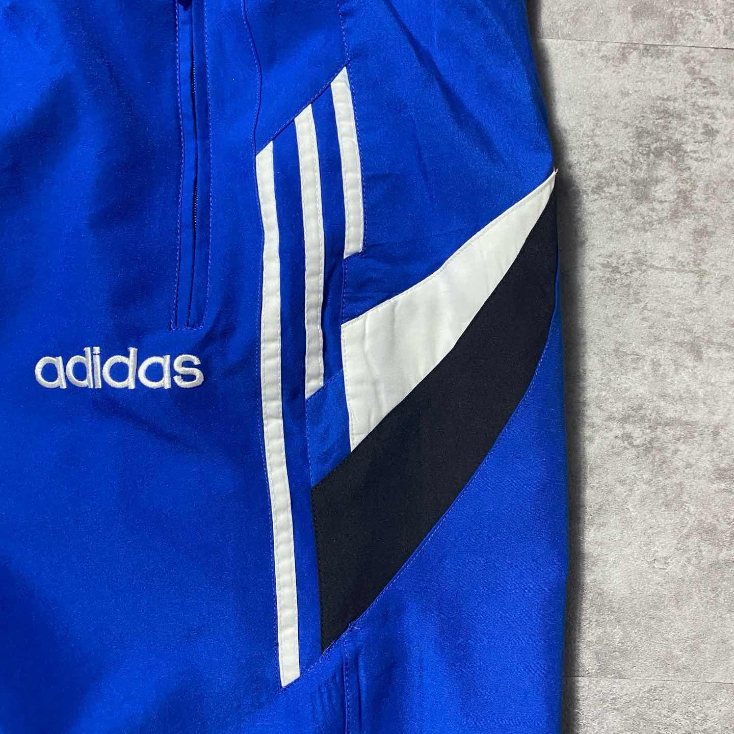 90s アディダス 刺繍ロゴ ジップ付ポケット ブルー ナイロン トラックパンツ