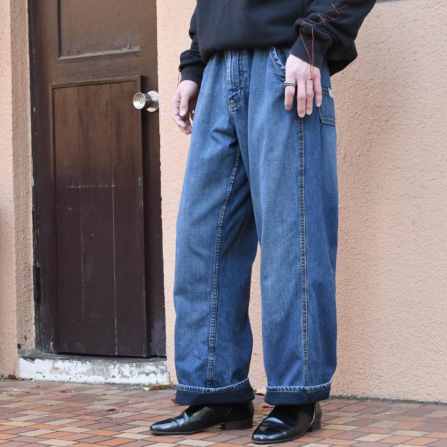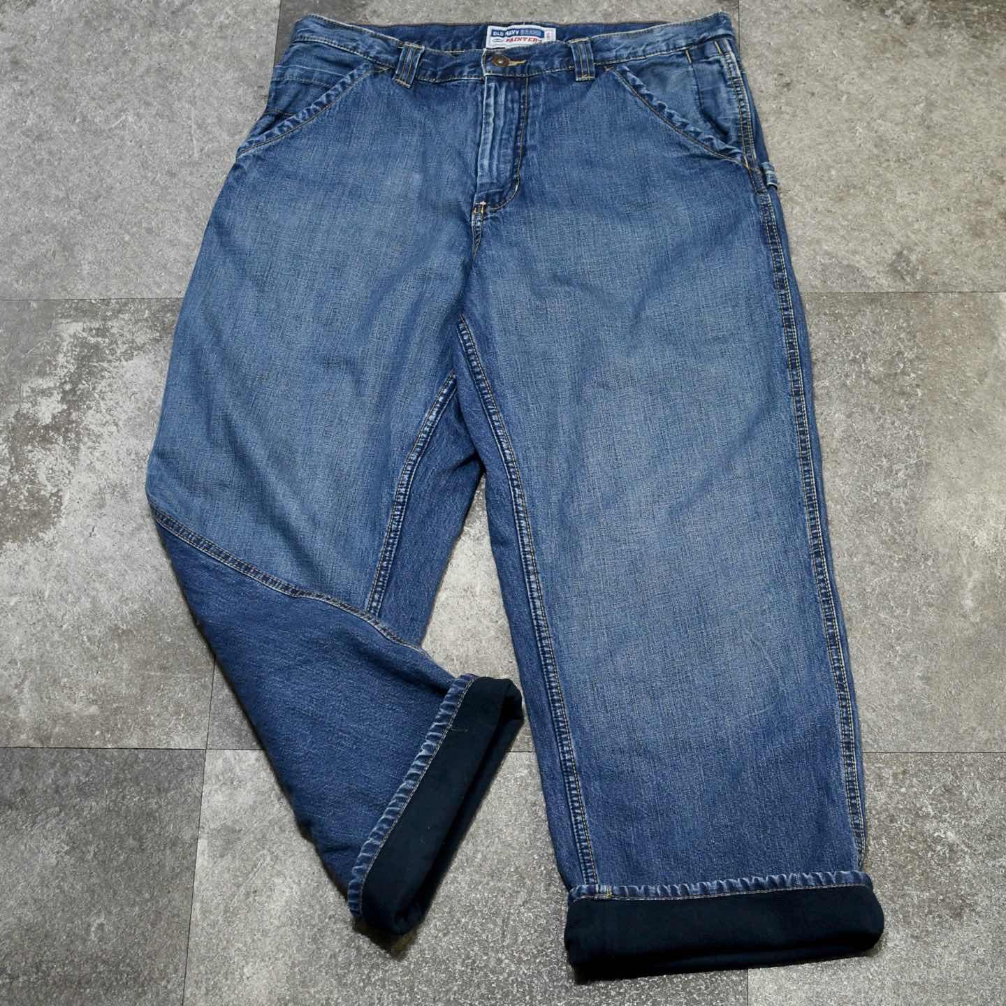 SIZE:34×30 ウエスト89cm 総丈102cm 股下73cm わたり38cm 裾幅27cm fabric/cotton 着用画像 173cm/56kg デニムの中でも変わり種、かつA/Wに特化した 個体がこちら。 上はアウターを着れば暖かいですが、ボトムスは 正直なところ限界を感じることもしばしば... そんな中こちらは、裏地がフリースで暖かく、 カラーは黒という気の利いた1本。 ロールアップでアクセントとして遊んでも、 ぼてっとしたワイドなシルエットを そのまま楽しんでも、良い塩梅で新鮮味を 味わえるのではないでしょうか。 それでいてデイリーユース出来る "デニム"というカテゴリーで 紹介出来るのが嬉しい... ※裾上げ等のレングス直しにつきましては、 購入前に、必ずご連絡お願い致します。 ※撮影状況により、実物と多少色が異なる 場合がございます。 ※古着を取り扱っているため、気づかない汚れや ほつれがある場合がございます。 ※サイズは着用感で選んでおり、 表記サイズは説明欄の最初に記載しております。 old vintage ヴィンテージ used 80's 90's アメリカ古着 ユーロ古着 POLO RALPH LAUREN Eddie Bauer OLD GAP LANDS' END ランズエンド LLBean エルエルビーン オールドギャップ エディーバウアー ラルフローレン ブルックスブラザーズ Brooks Brothers デニム デニムパンツ がお好きな方 #vintage #used #90s #80s #古着 #ヴィンテージ #LLBean #エルエルビーン #EddieBauer #エディーバウアー #oldgap #オールドギャップ #LANDSEND #ランズエンド #NAUTICA #ノーティカ #ラルフローレン #POLORALPHLAUREN #ペインターパンツ #ワイドパンツ #デニム #デニムパンツ