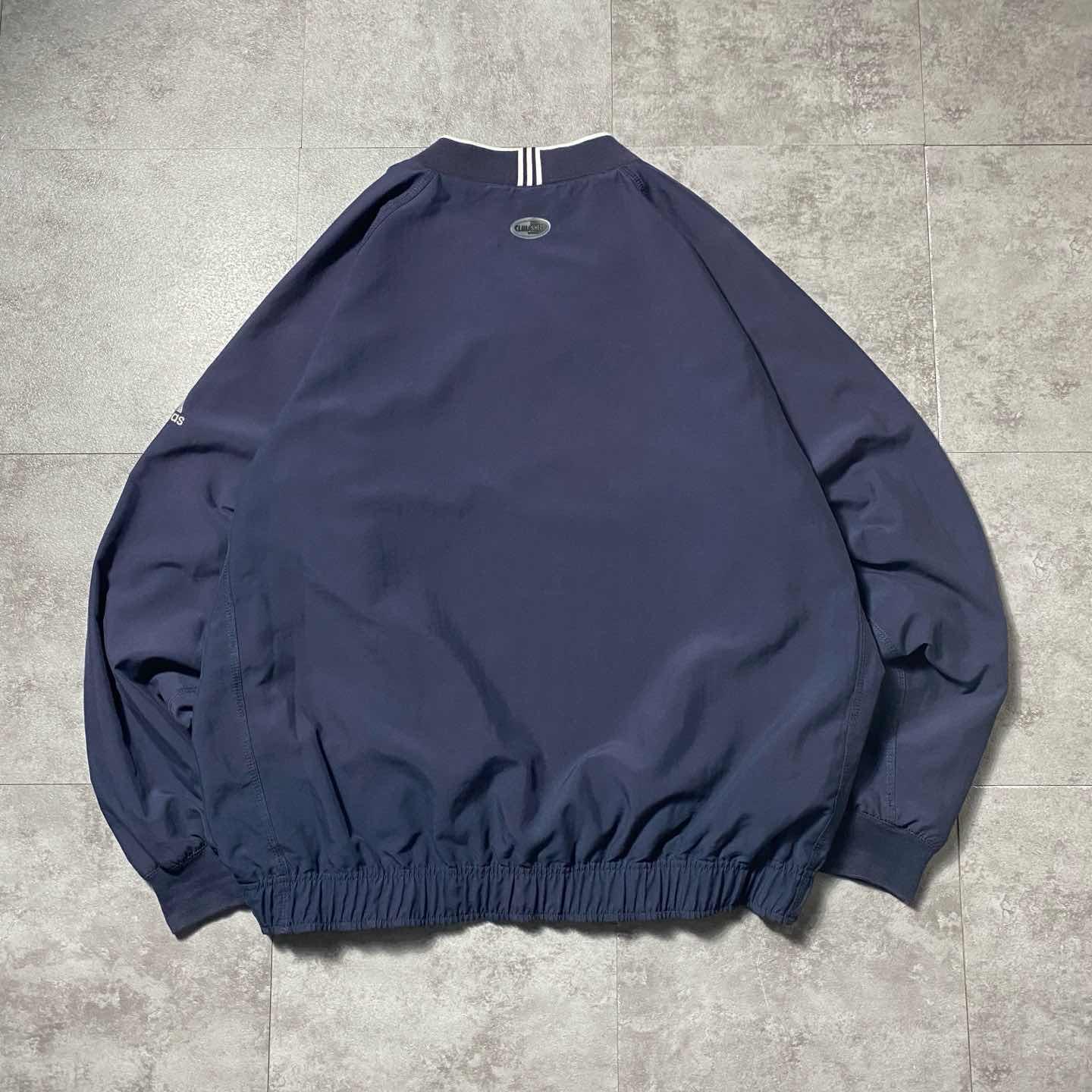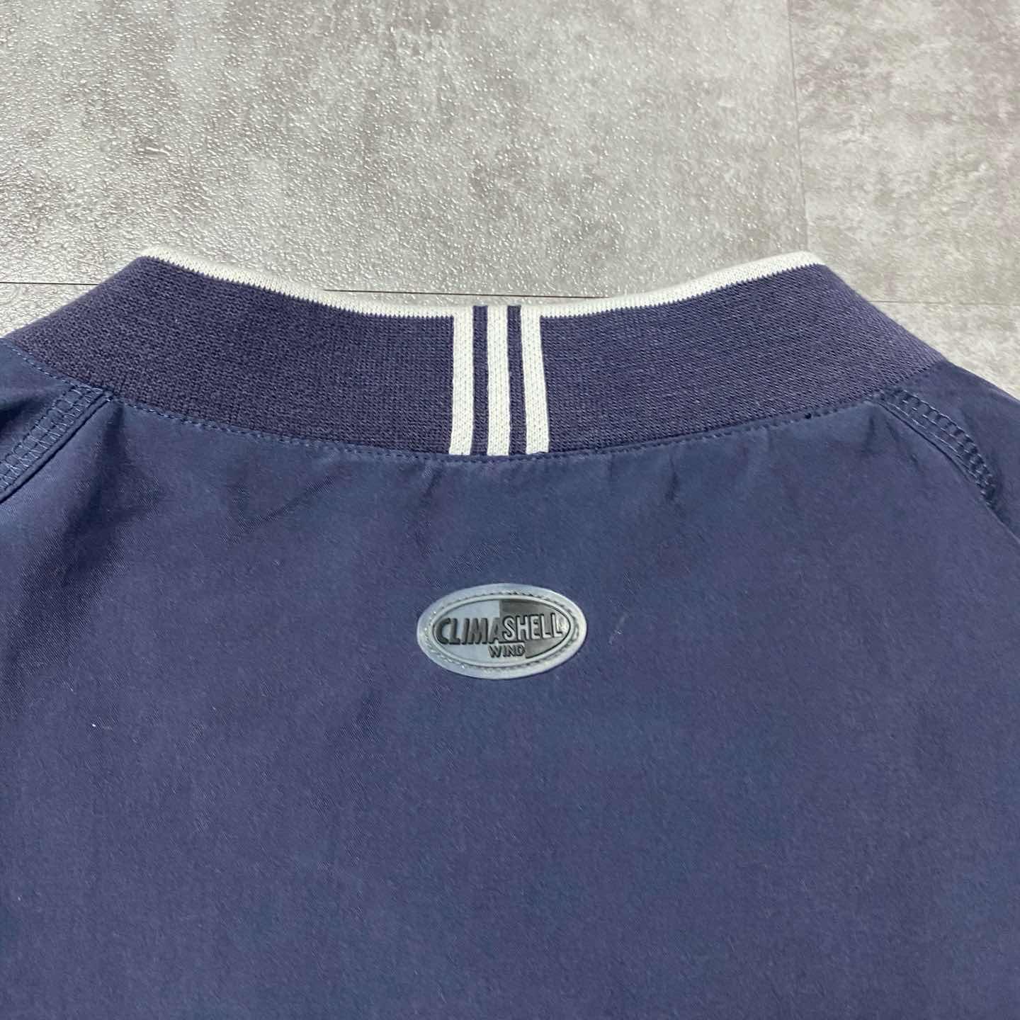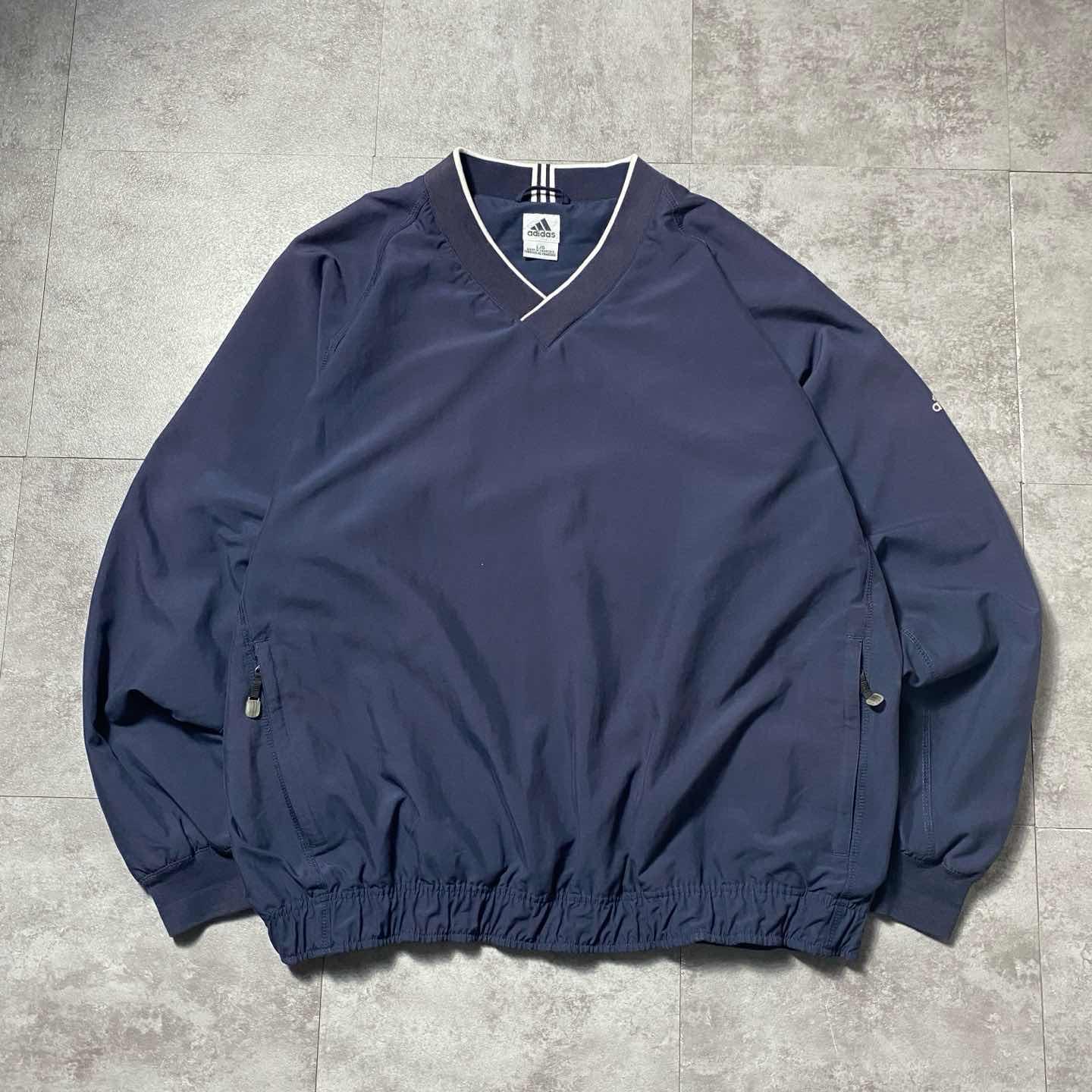 00s アディダス 刺繍アームロゴ ラインリブ ネイビー ナイロンプルオーバー