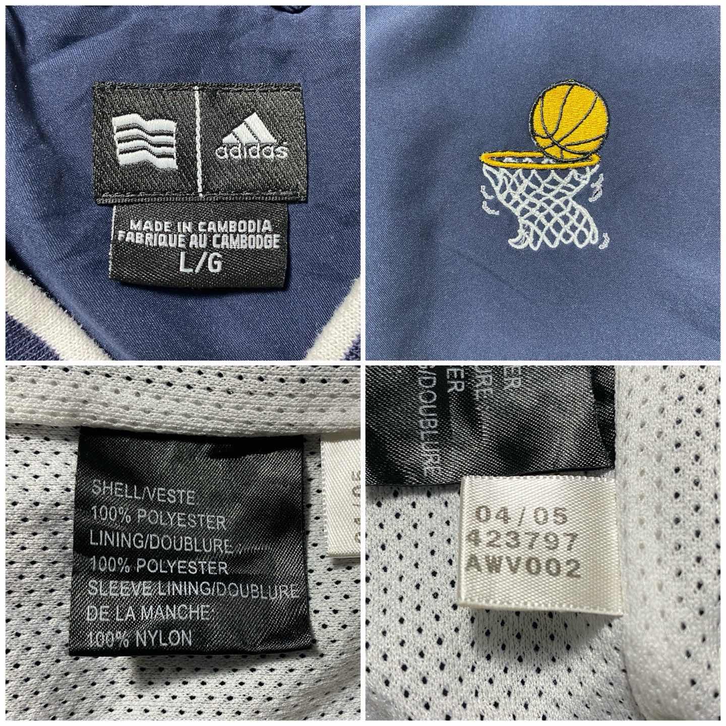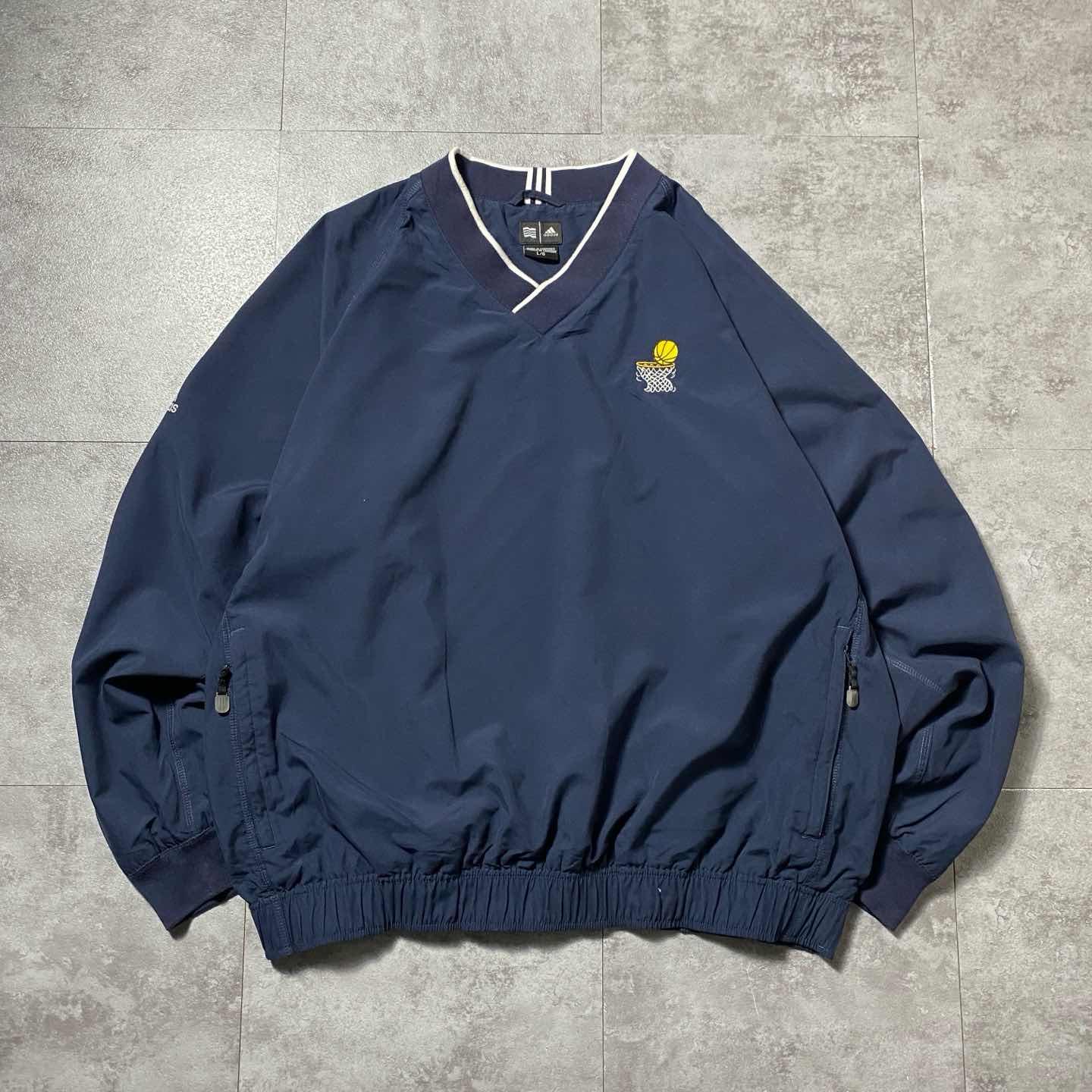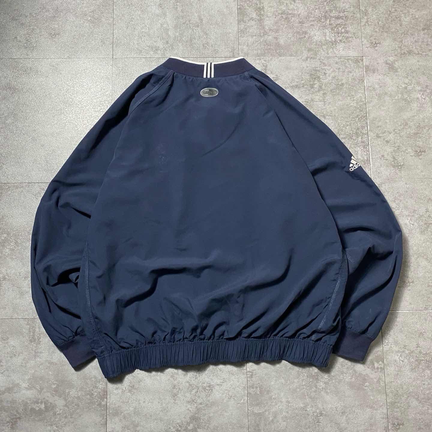 00s アディダス 刺繍アームロゴ ラインリブ ネイビー ナイロンプルオーバー
