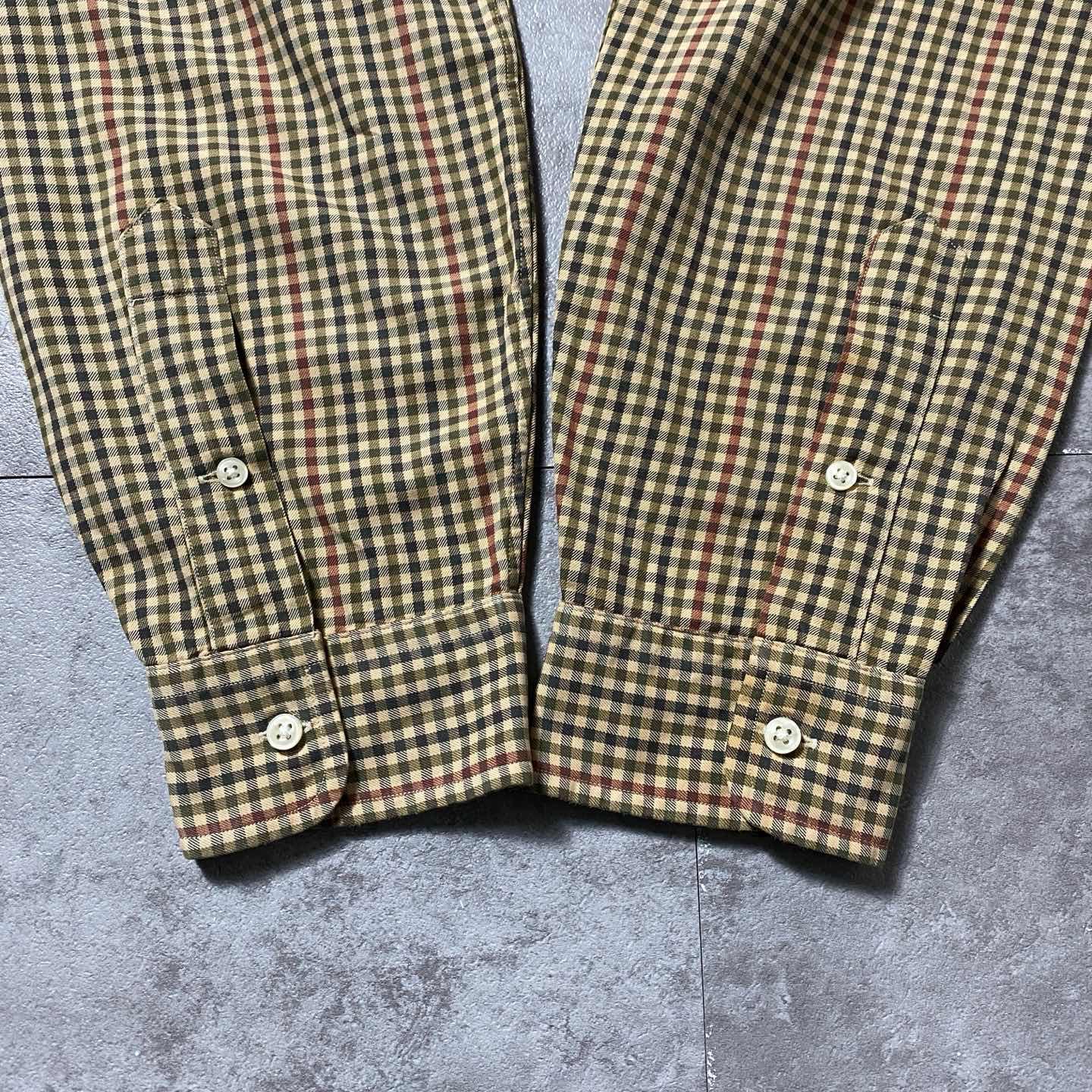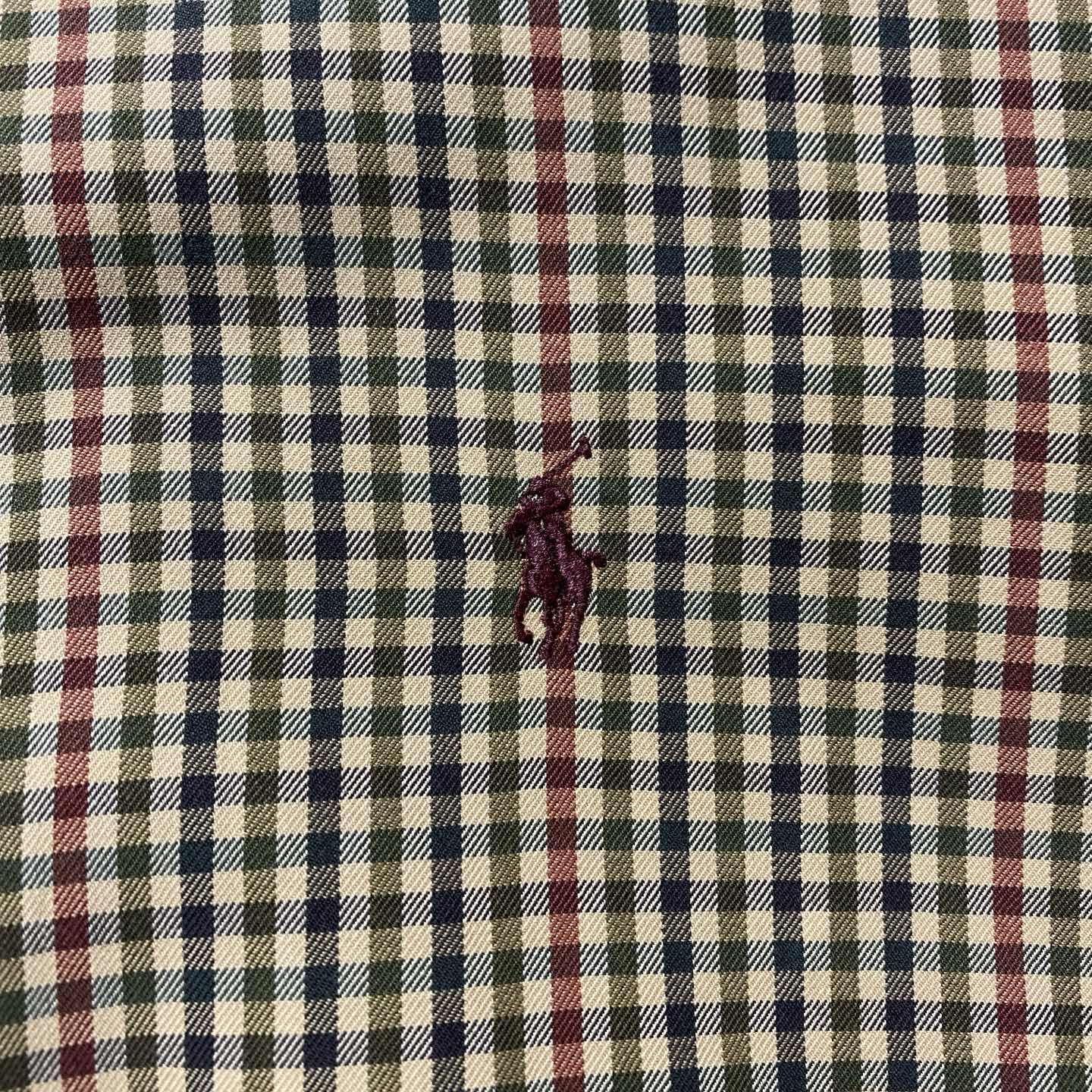 00s ラルフローレン 刺繍ロゴ グリーン チェック総柄 ボタンダウンシャツ