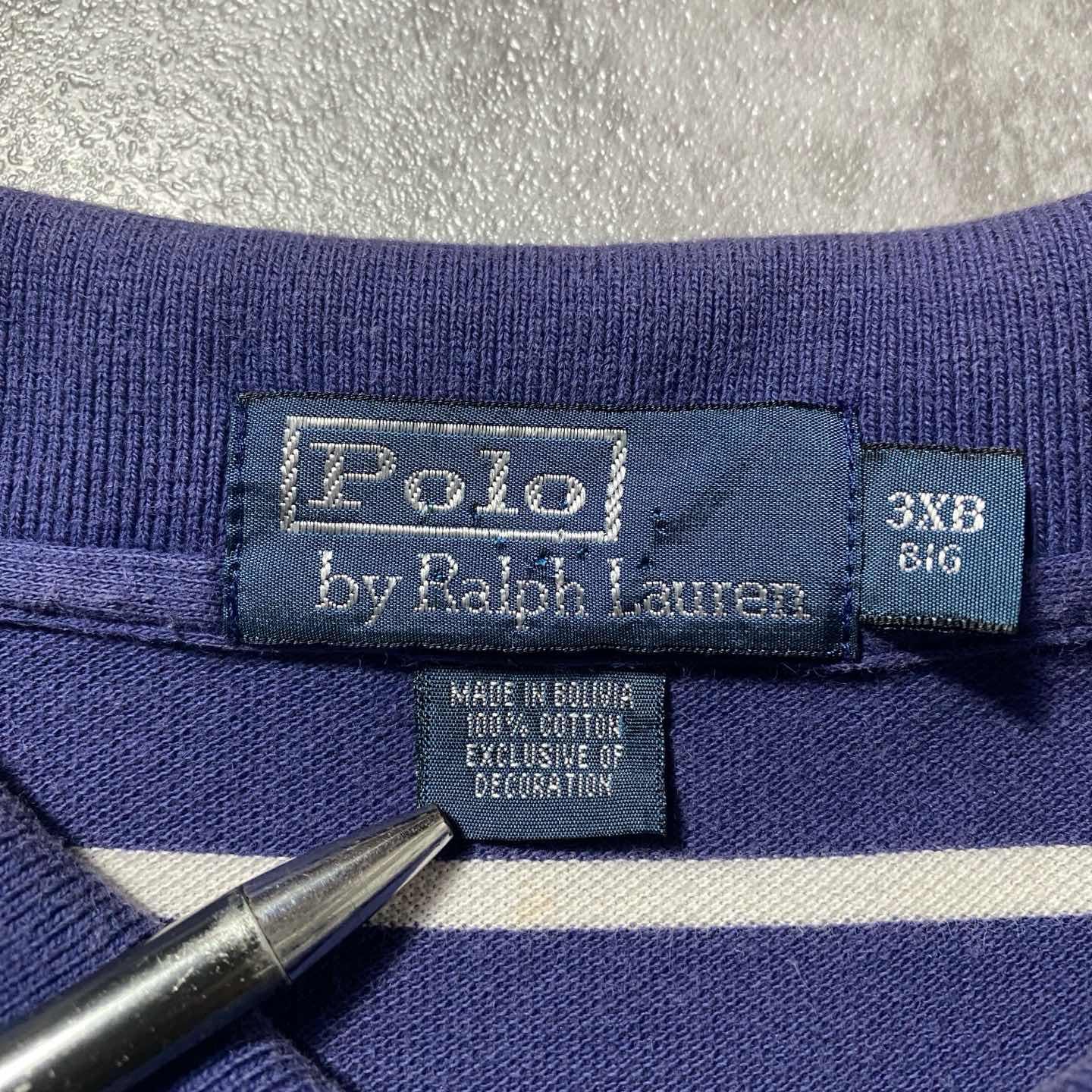 90s ポロバイラルフローレン 刺繍ロゴ ポニー ボーダー ポロシャツ