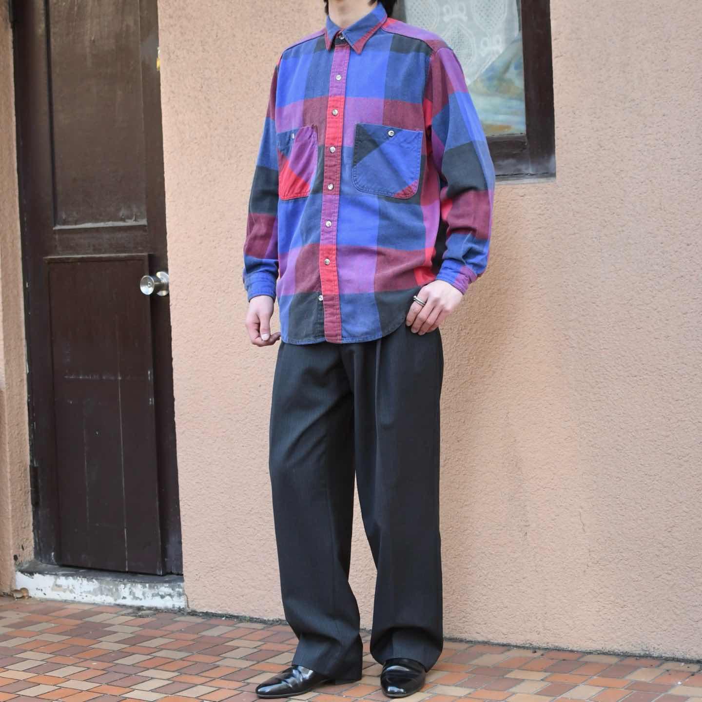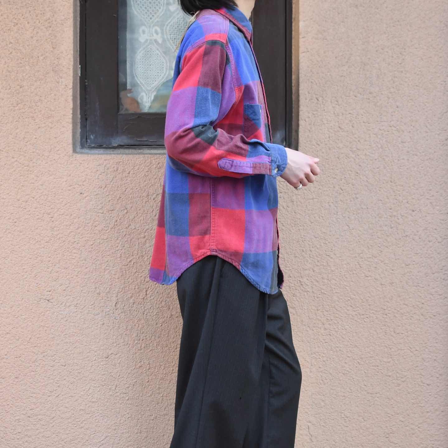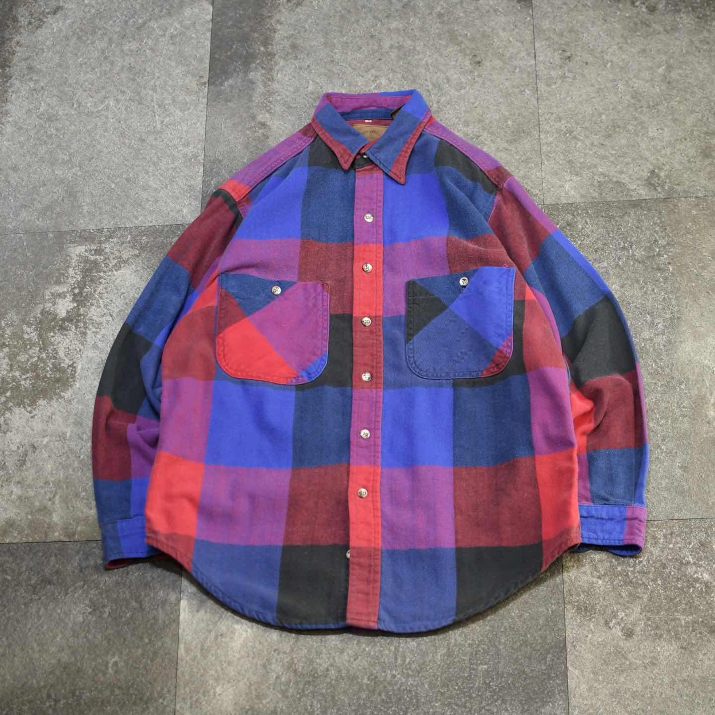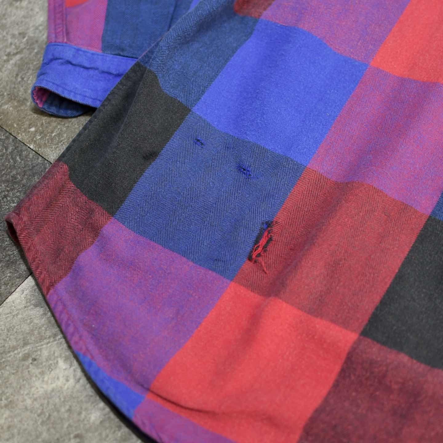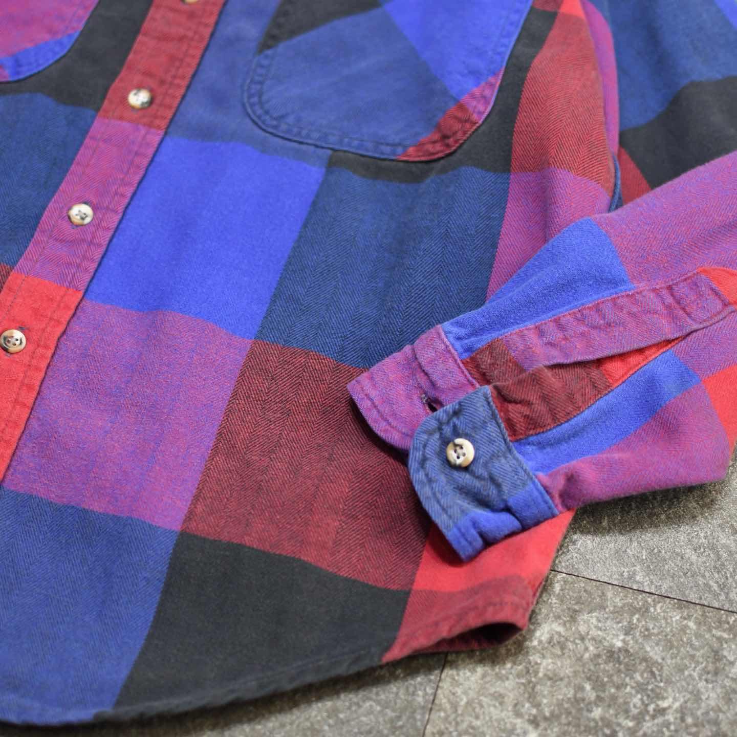 SIZE:M 着丈74cm 肩幅47cm 身幅60cm 袖丈58cm fabric/cotton 着用画像 173cm/58kg 個人的に流行り廃りに囚われず、ネルシャツを 取り入れるならこんな色使いの個体が良いなと。 独特な色使いでありながら、程良く使い込まれる事で柔らかくなった印象と、インナーとして 落とし込んでも着膨れしないサイズ感◎ 背面のダメージまで馴染んだネルシャツ、Tシャツやサーマルをインナーに羽織りとしてもおすすめです。 ※右袖、背面裾付近に生地の傷みあり。 ※撮影状況により、実物と多少色が異なる場合が ございます。 ※古着を取り扱っているため、気づかない汚れや ほつれ等がある場合がございます。 ※サイズは着用感で選んでおり、 表記サイズは説明欄の最初に記載しております。 古着 オーバーサイズ old vintage ヴィンテージ used 80's 90's アメリカ古着 ユーロ古着 POLO RALPH LAUREN Eddie Bauer OLD GAP LANDS' END ランズエンド LLBean エルエルビーン オールドギャップ エディーバウアー ラルフローレン ブルックスブラザーズ Brooks Brothers 長袖シャツ シャツ 赤 レッド 紫 パープル 青 ブルー などがお好きな方 #vintage #オーバーサイズ #old #used #90s #80s #古着 #ヴィンテージ #アメリカ古着 #ユーロ古着 #LLBean #エルエルビーン #EddieBauer #エディーバウアー #oldgap #オールドギャップ #LANDSEND #ランズエンド #NAUTICA #ノーティカ #ラルフローレン #POLORALPHLAUREN #ブルックスブラザーズ #BrooksBrothers #StJohnsBay #フランネルシャツ #ネルシャツ #チェックシャツ