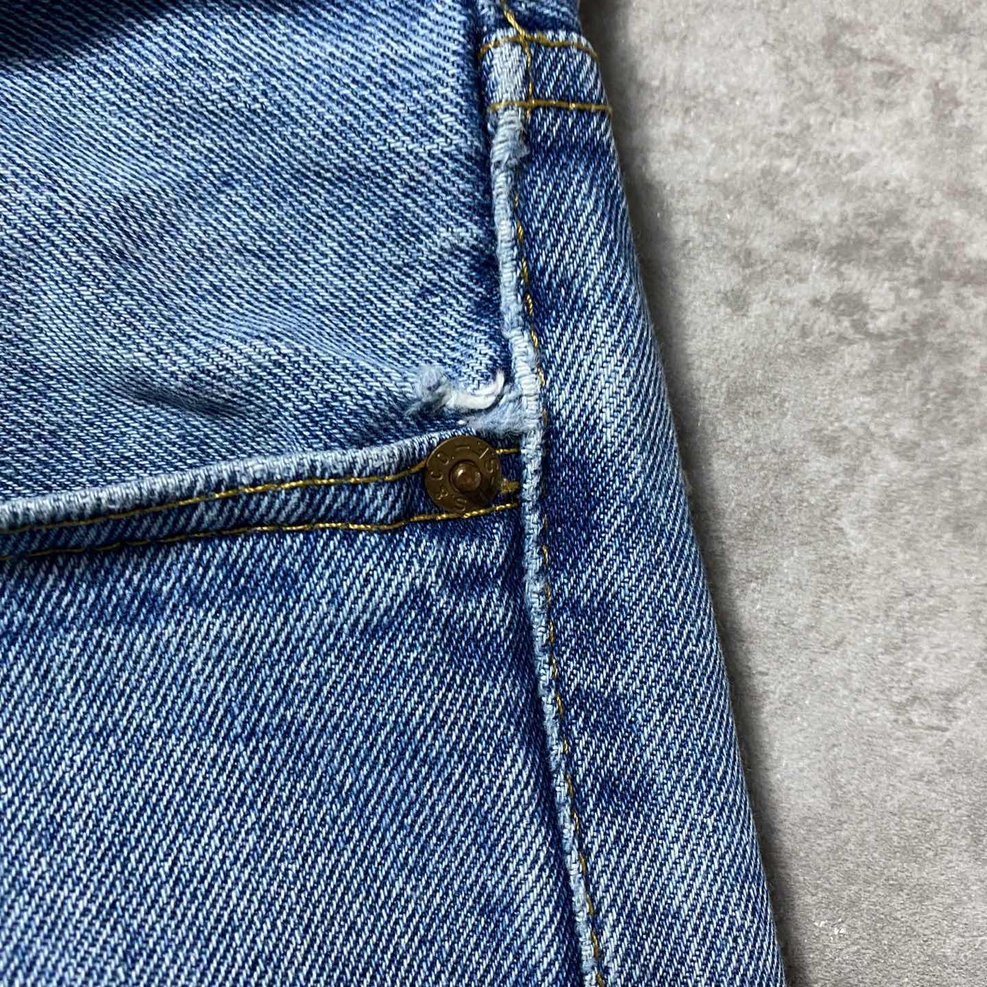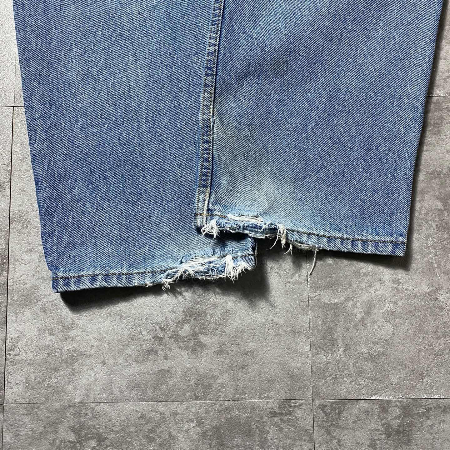 ○Size○ 表記→W36 L32 ・ウエスト94 ・レングス80 ・股上31 ・わたり幅28 ・裾幅19 ・総丈108 ○Color○ ・デニム紺 ○Material○ ・100%コットン ○Condition○ ・裾先多少のダメージあり ・フロント左側ポケットにほつれ箇所あり ○caution○ 当店で取り扱っている商材は全て『古着』となっております。 そのため、多少の状態難(ほつれ、傷、汚れ、リブの伸び、使用感、擦れ、色あせ、etc)がある場合がございます。 新品同様の完璧なお品物をお求めの方は当店でのお買い物を控えて頂きますよう宜しくお願いします。 また、購入された商品に関しましては、購入日時から起算して『72時間以内に』発送手続きの方を取らせて頂きます。 お急ぎの場合は購入前に当店オンラインストアの方にお問い合わせ頂きますよう宜しくお願いします。 26/450