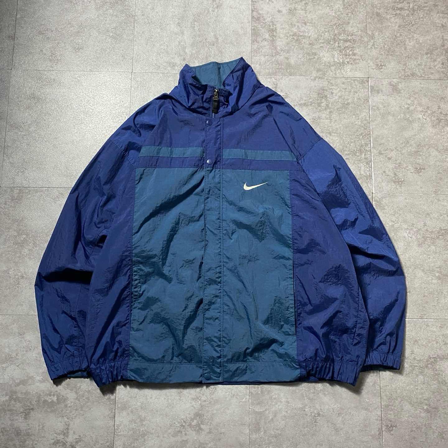90s NIKE スウォッシュ 刺繍ワンポイント バック刺繍 ナイロンジャケット