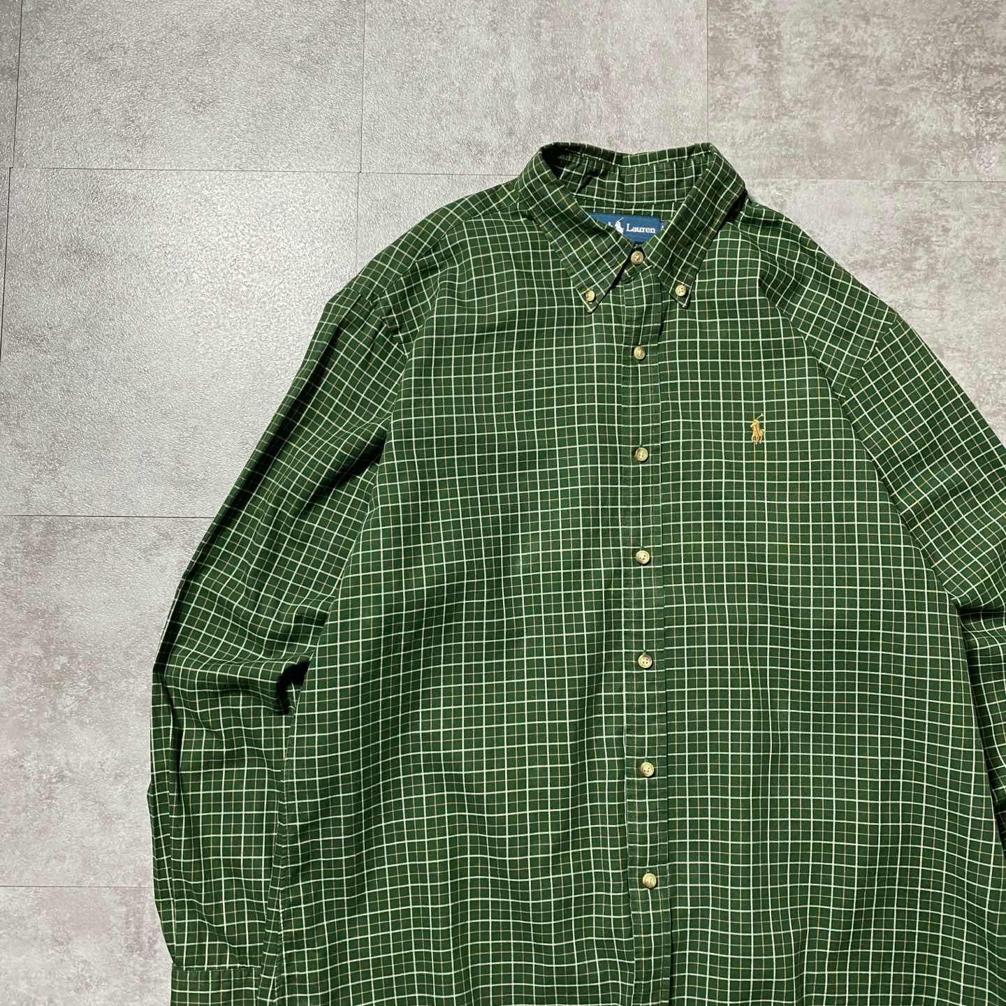 00s ラルフローレン 刺繍ロゴ グリーン チェック総柄 ボタンダウンシャツ