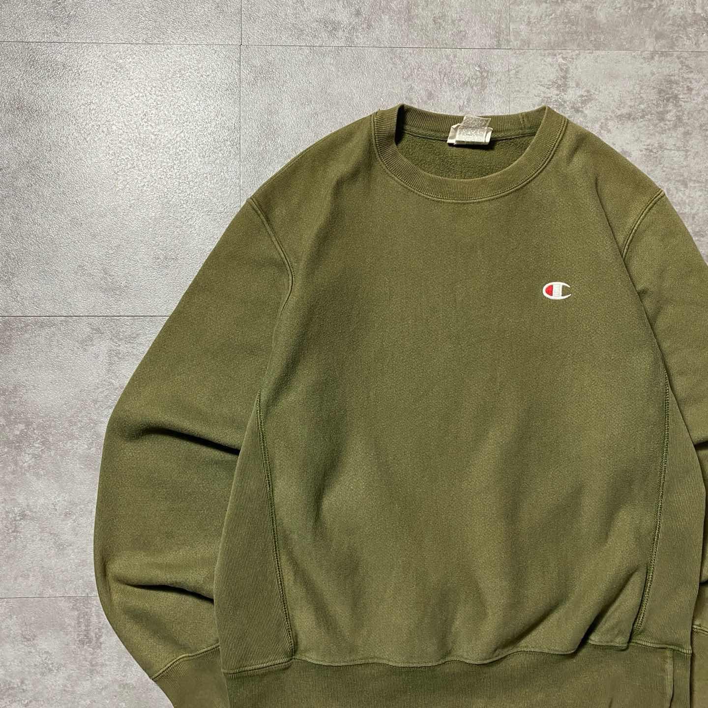 00s チャンピオン リバースウィーブ 刺繍ワンポイント カーキ スウェット