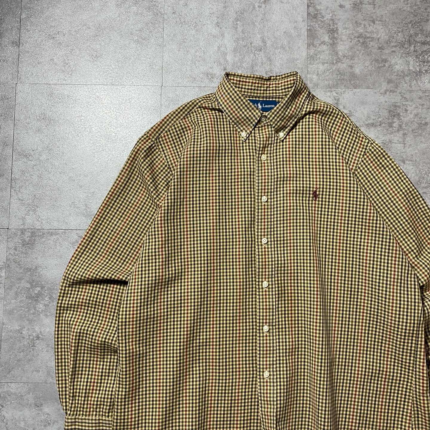 00s ラルフローレン 刺繍ロゴ ギンガムチェック ボタンダウンシャツ